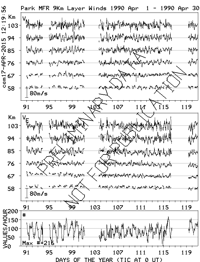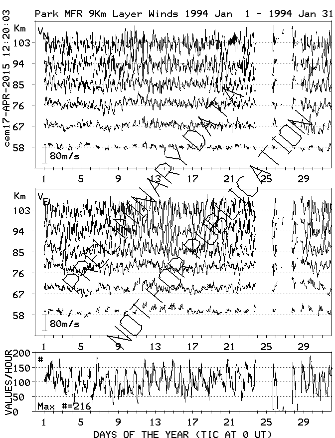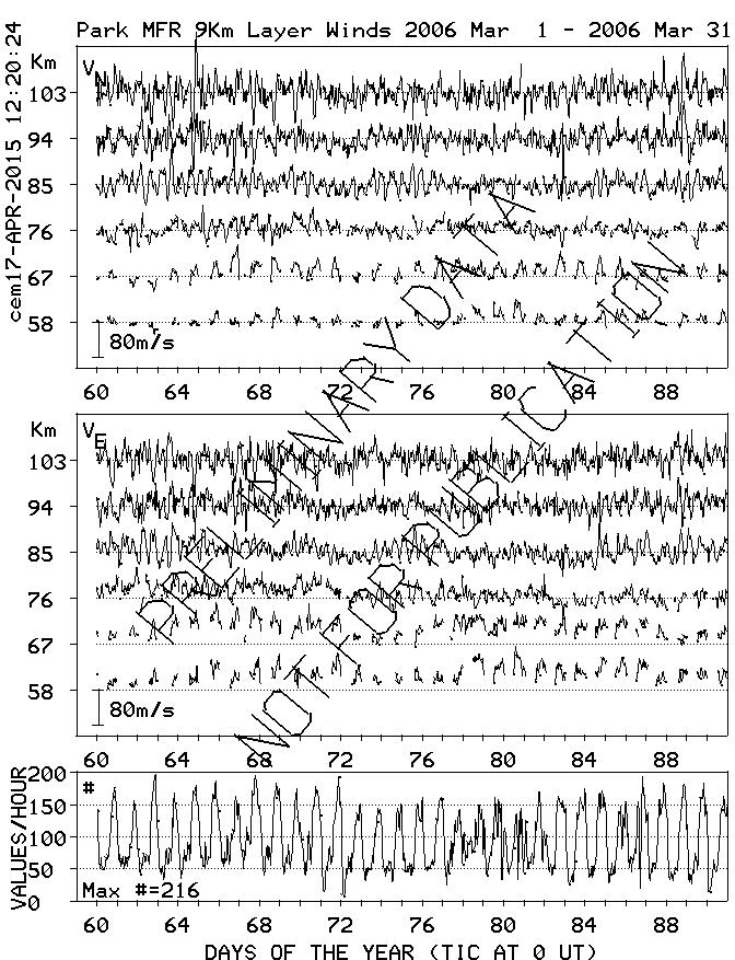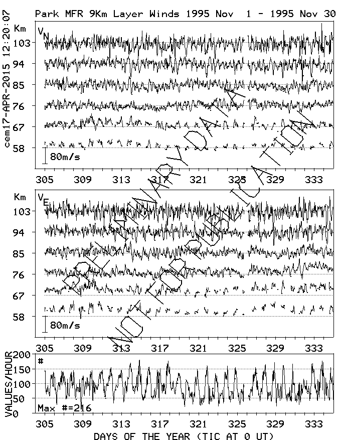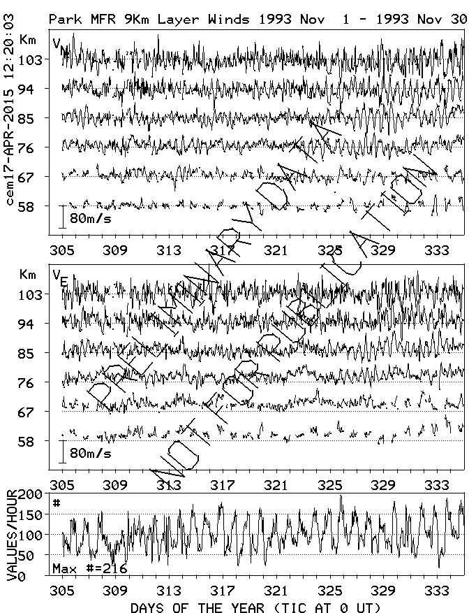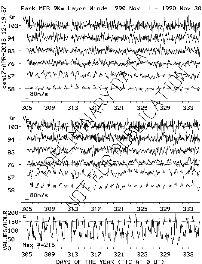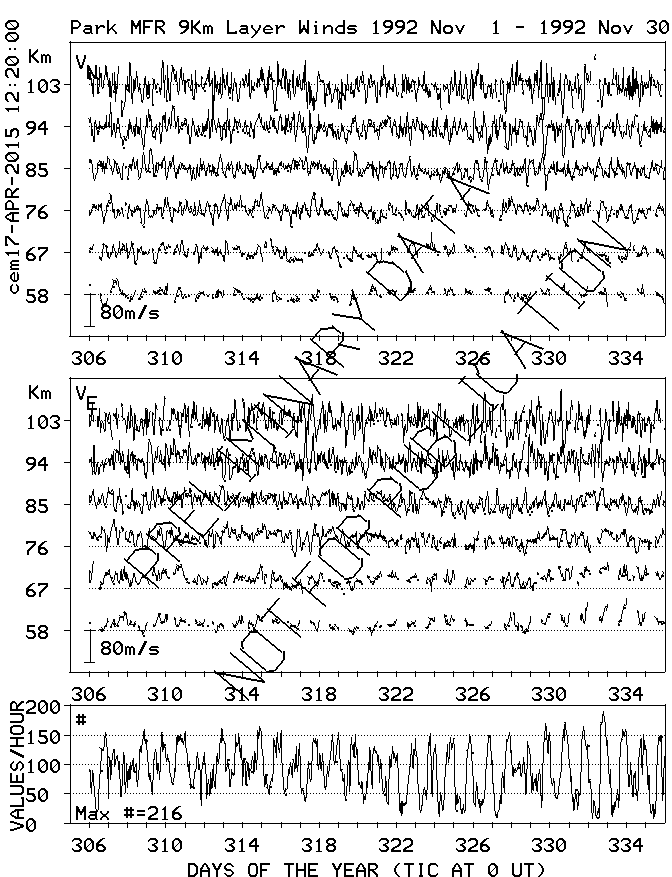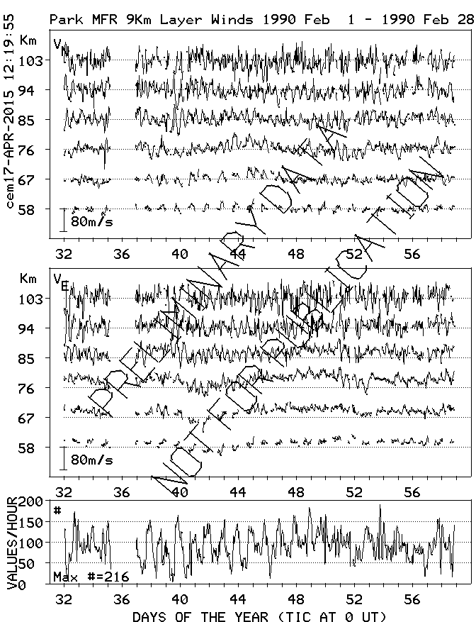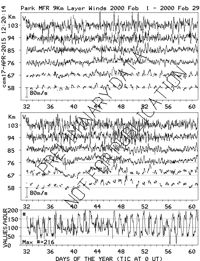 Saskatoon (52N,107W) MF Radar Winds, monthly quick look plots