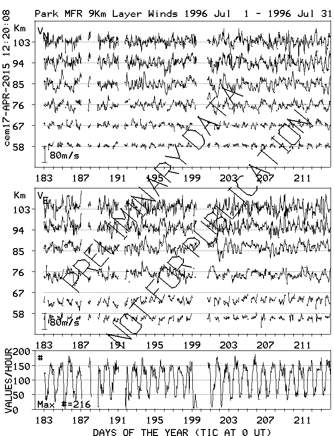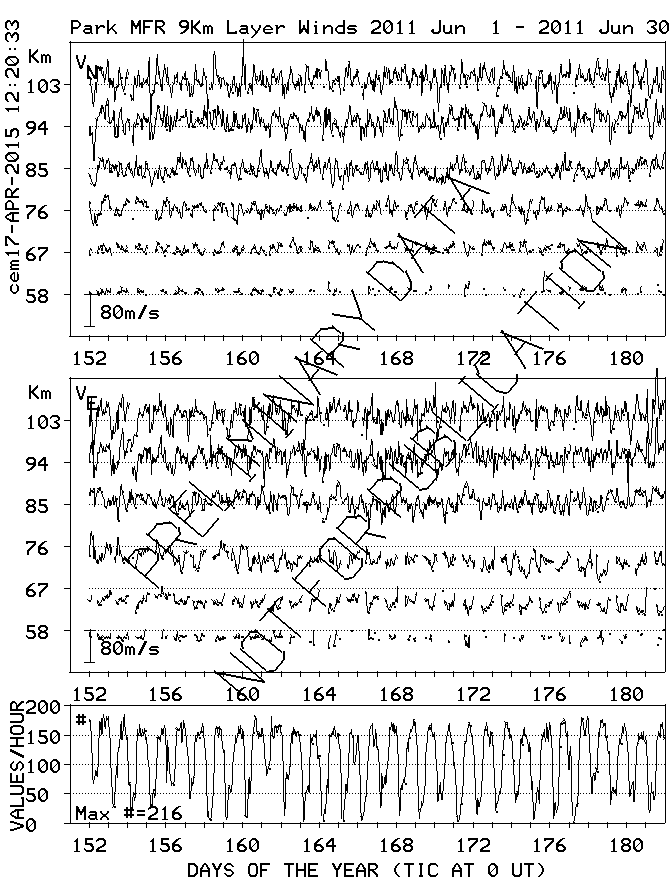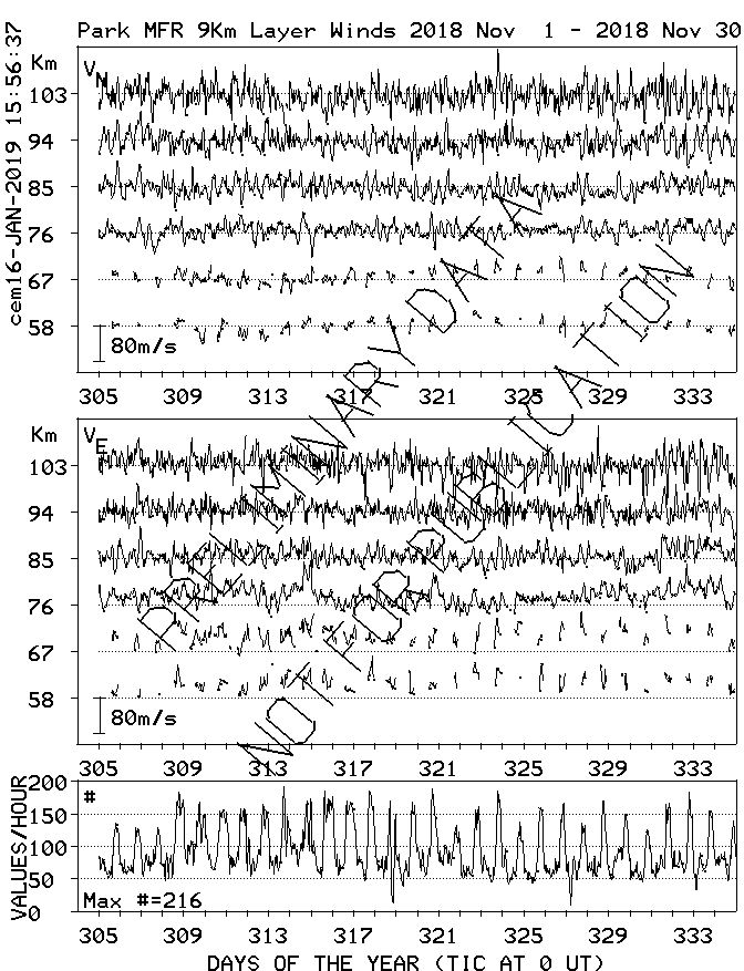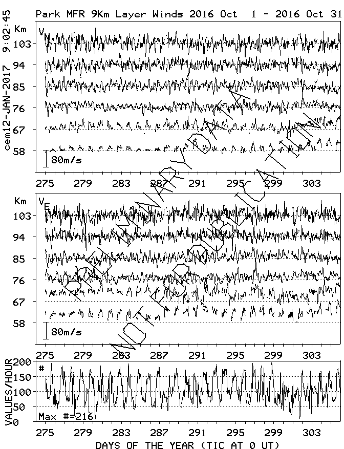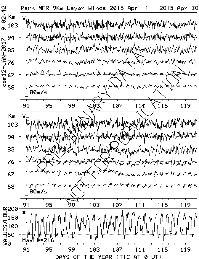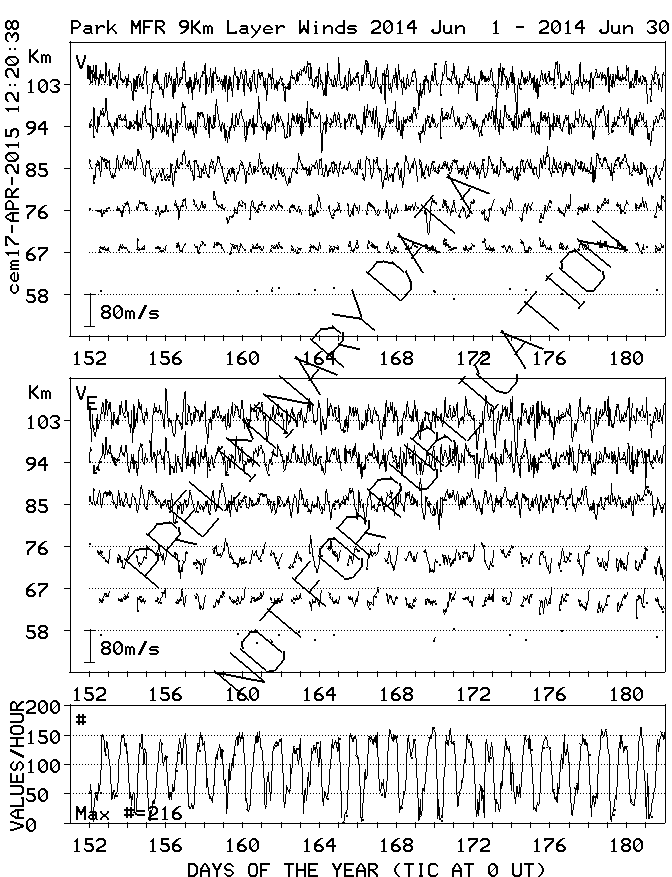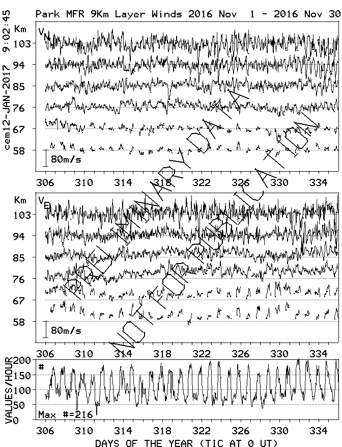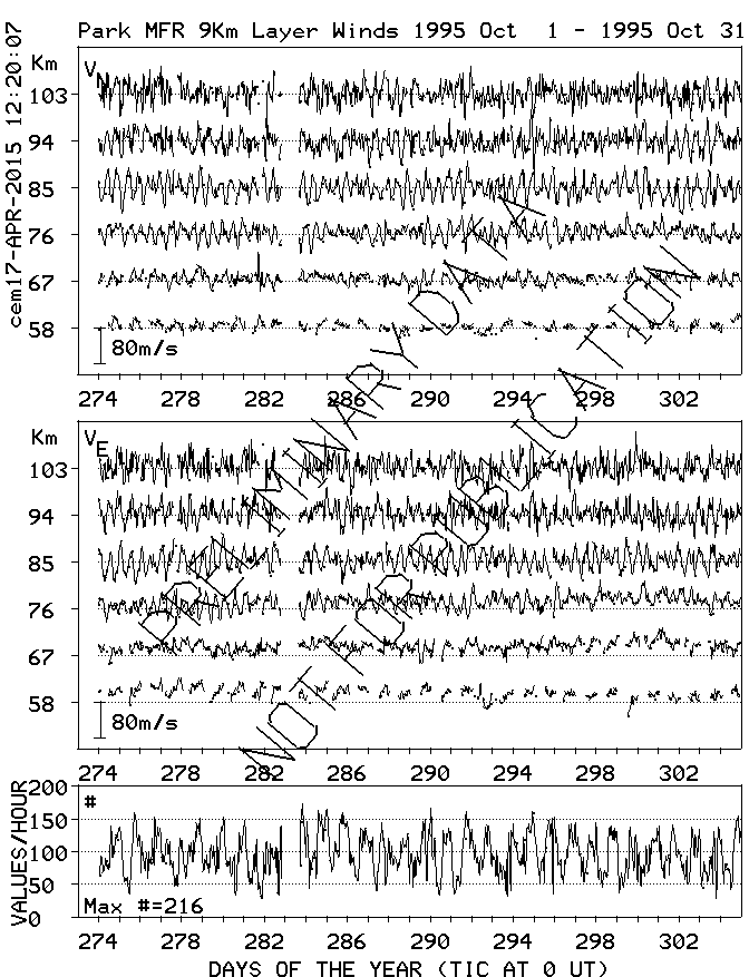 Saskatoon (52N,107W) MF Radar Winds, monthly quick look plots