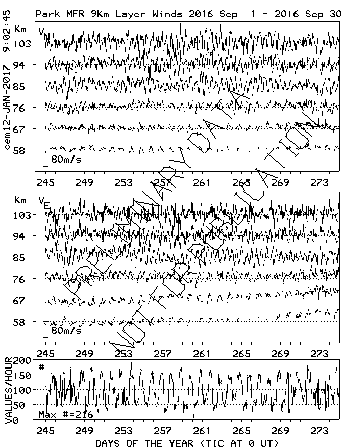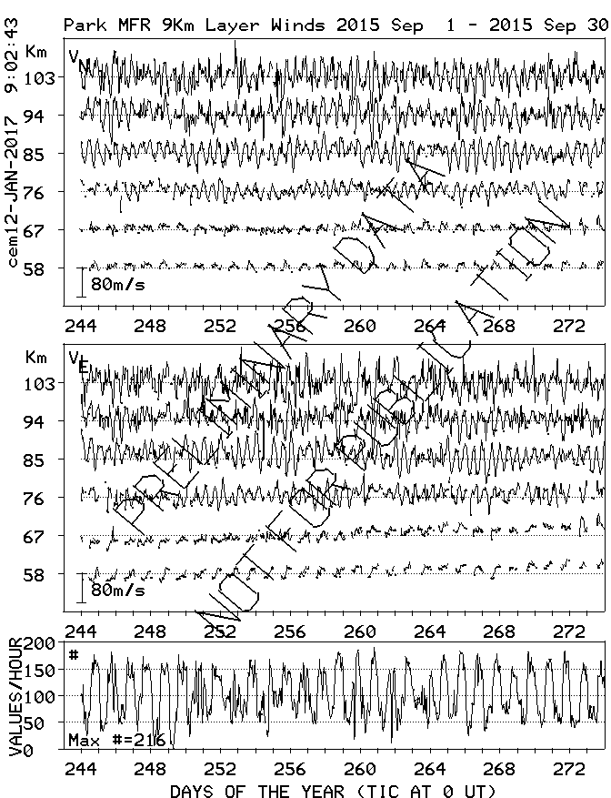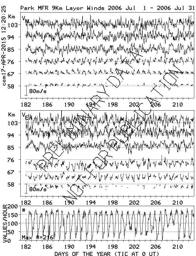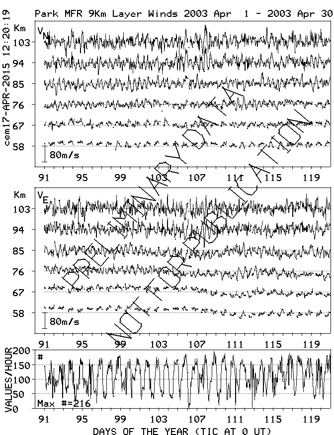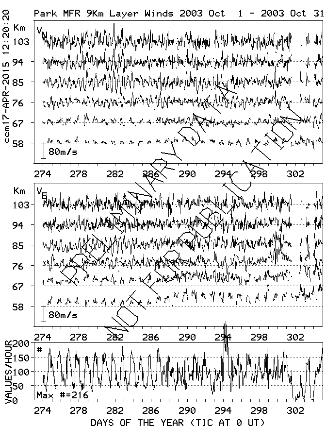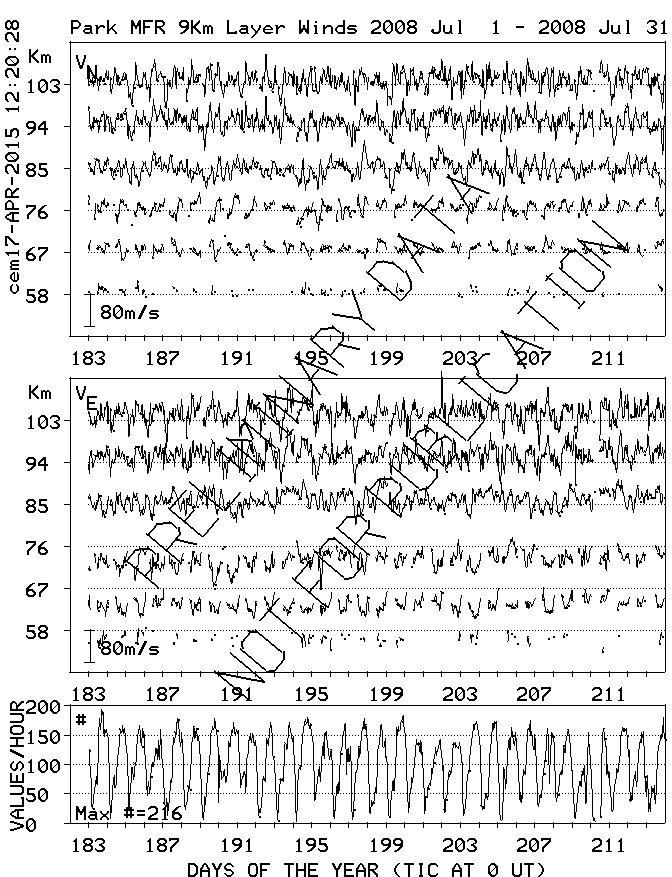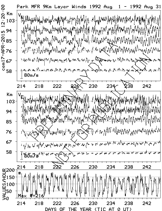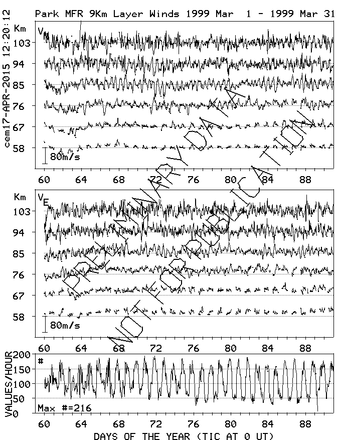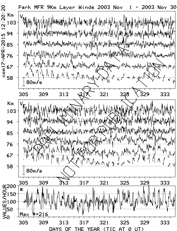 Saskatoon (52N,107W) MF Radar Winds, monthly quick look plots