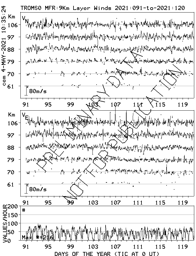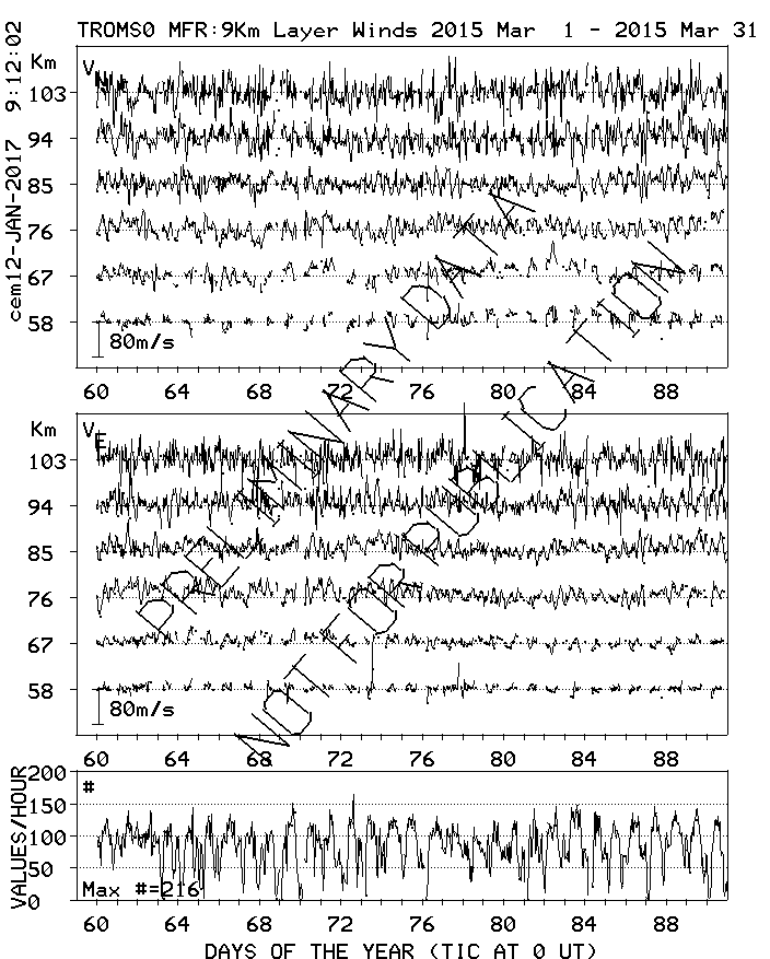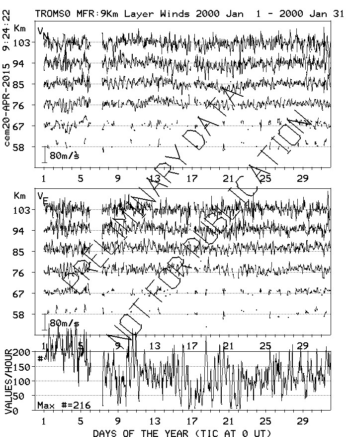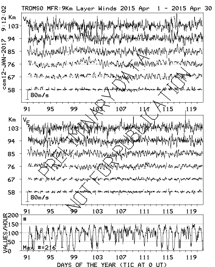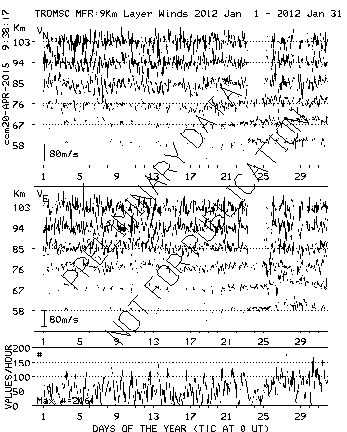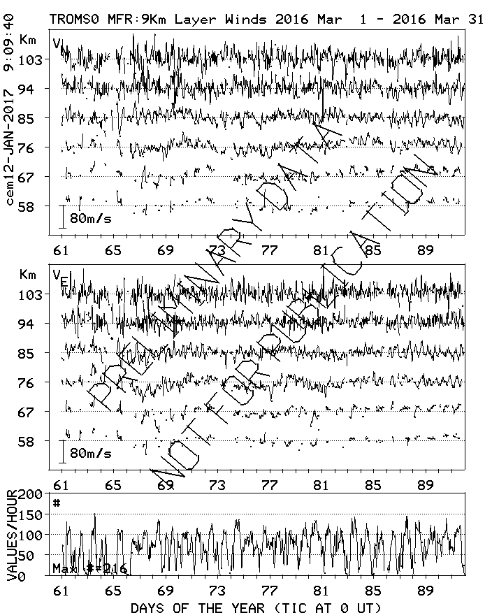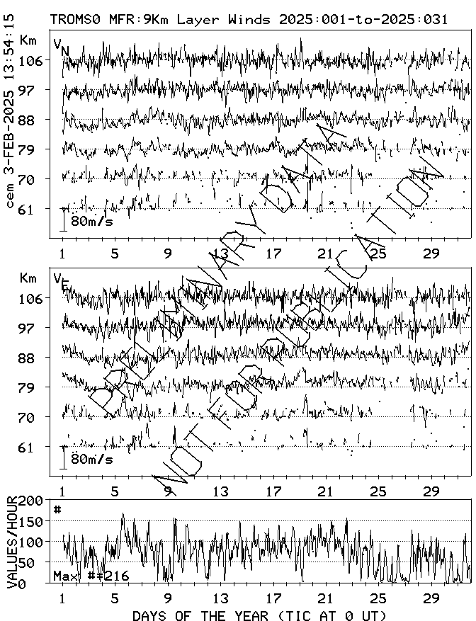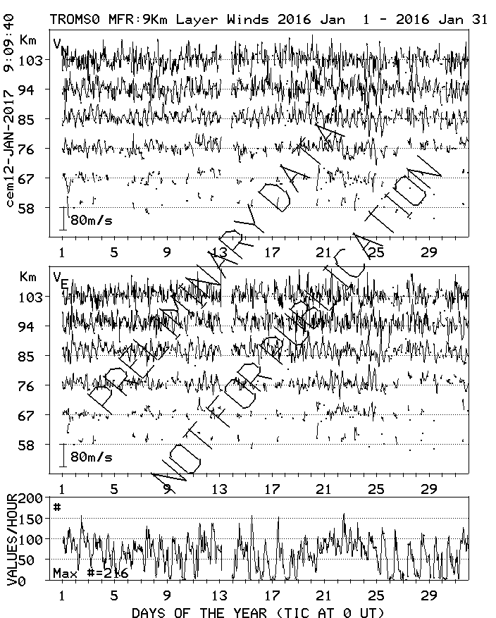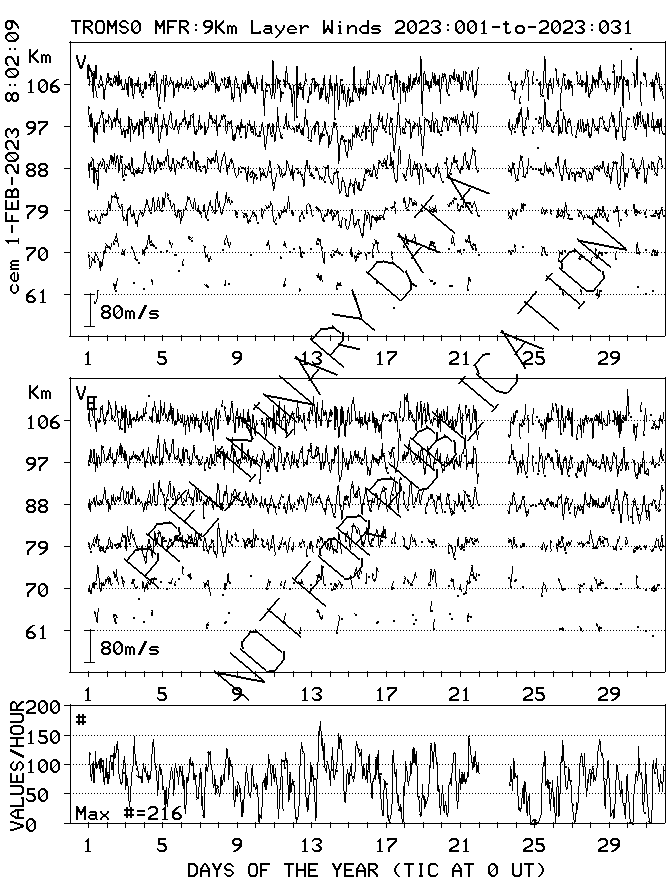 Tromsø (70N,19E) MF Radar Winds, monthly quick look plots