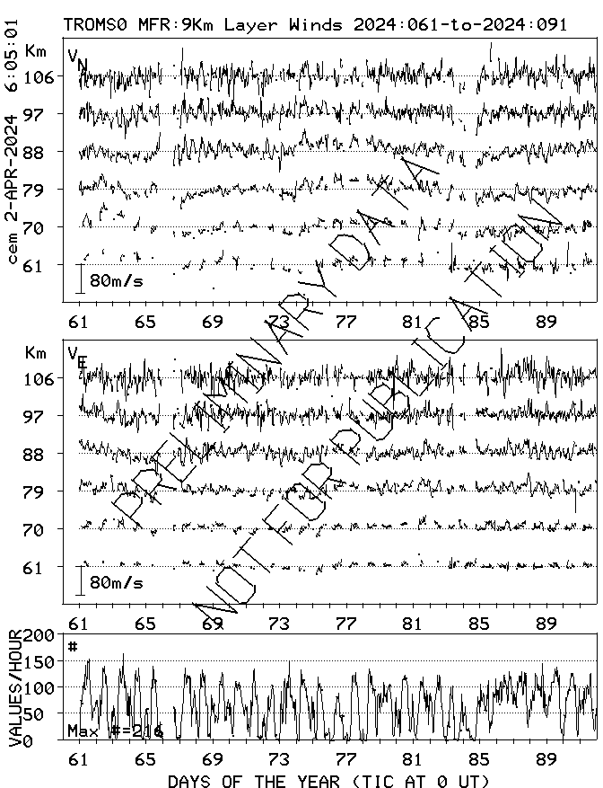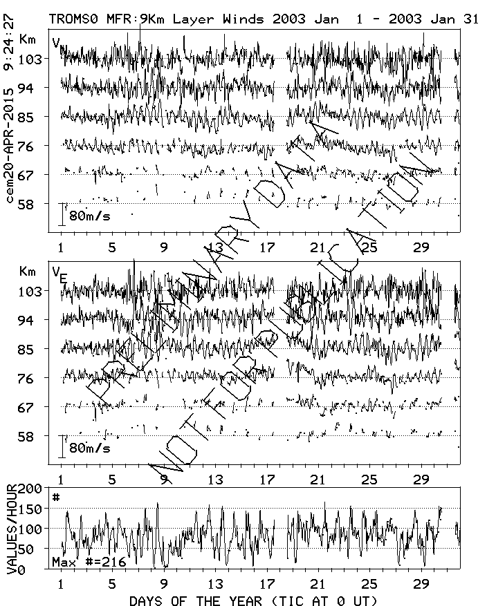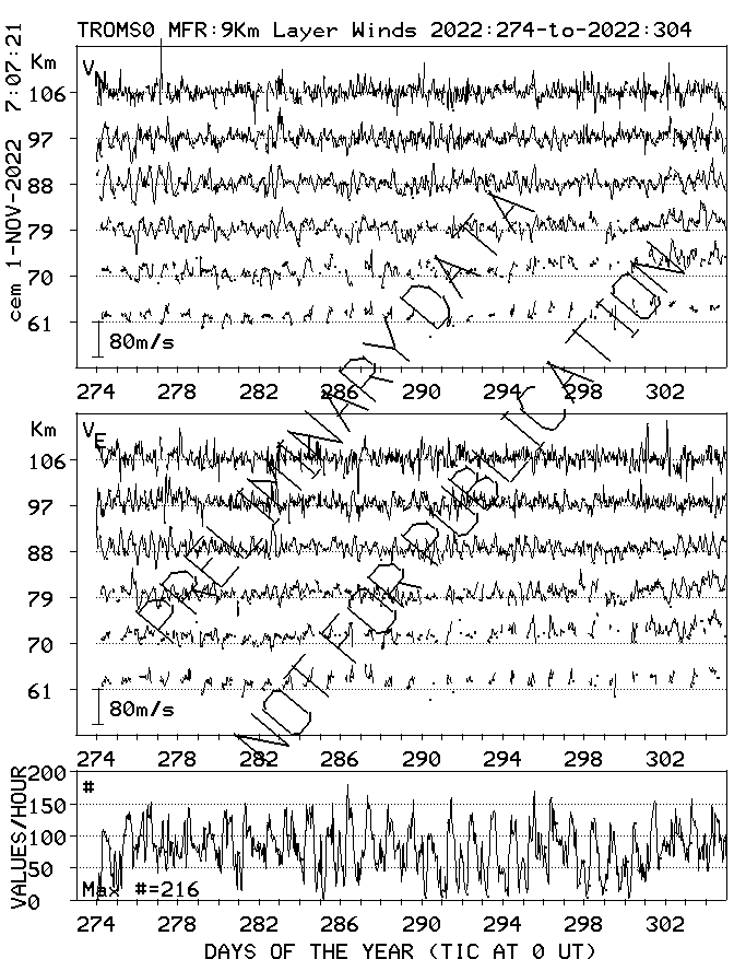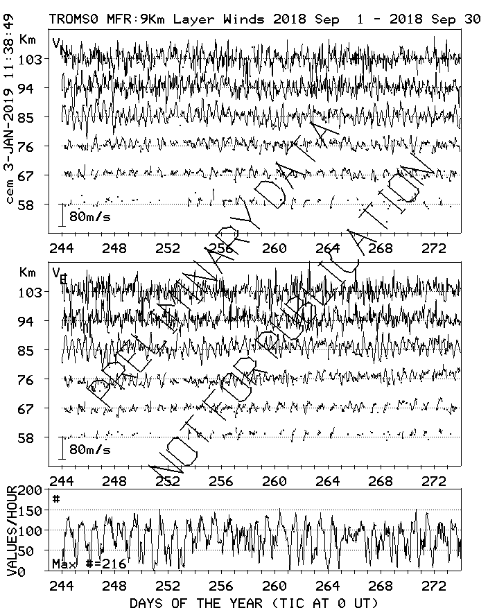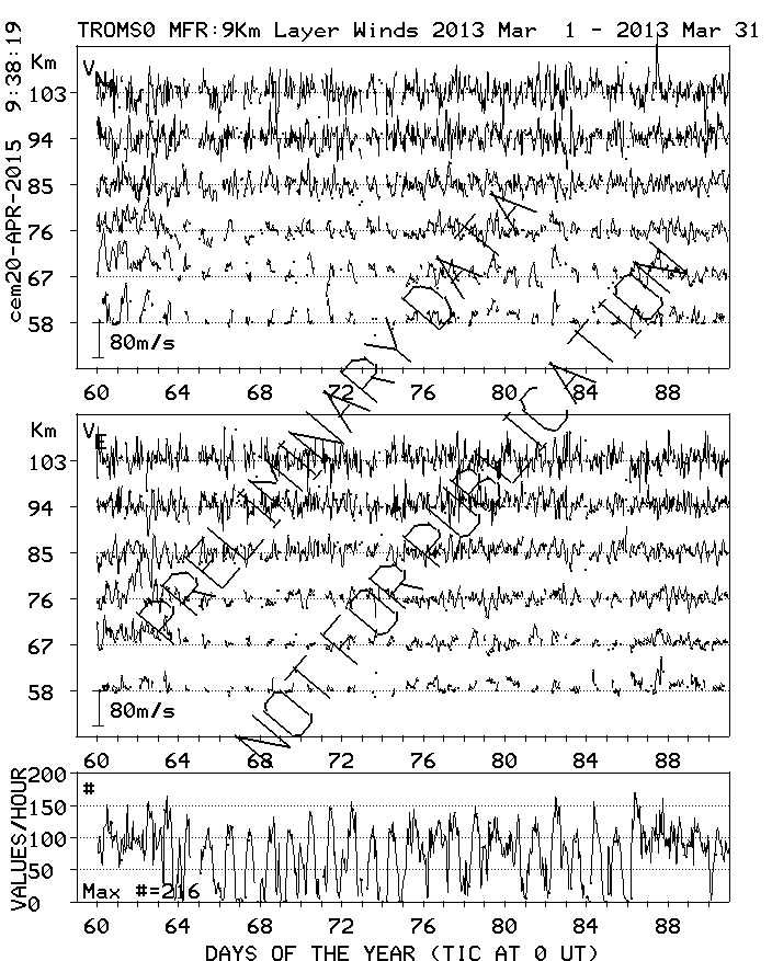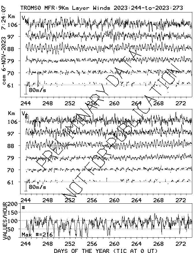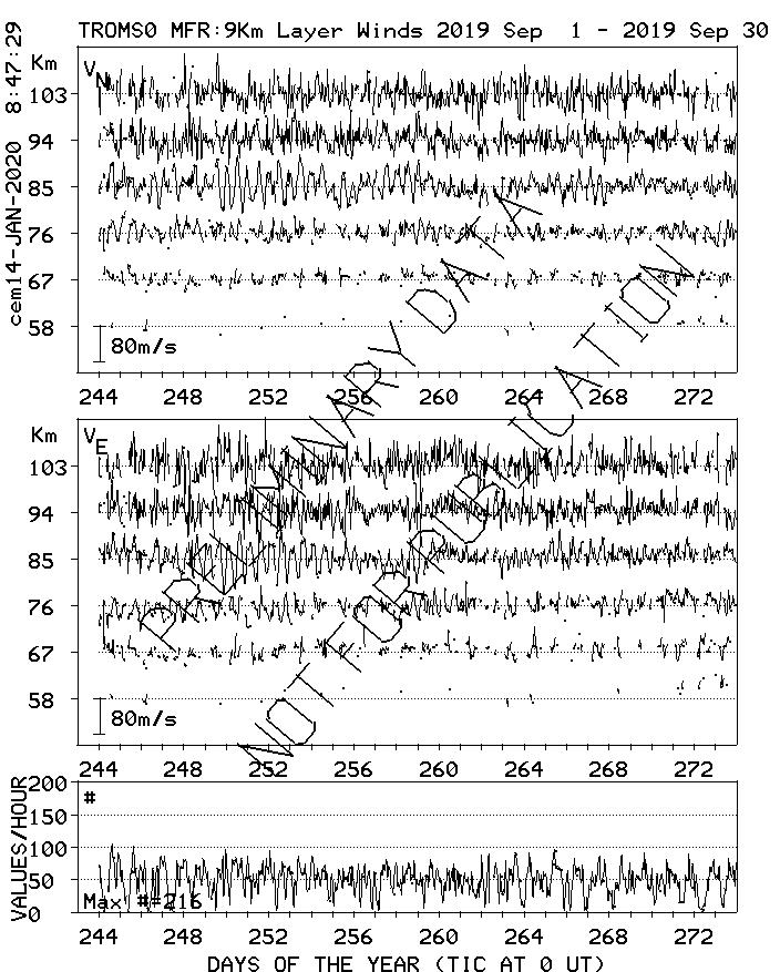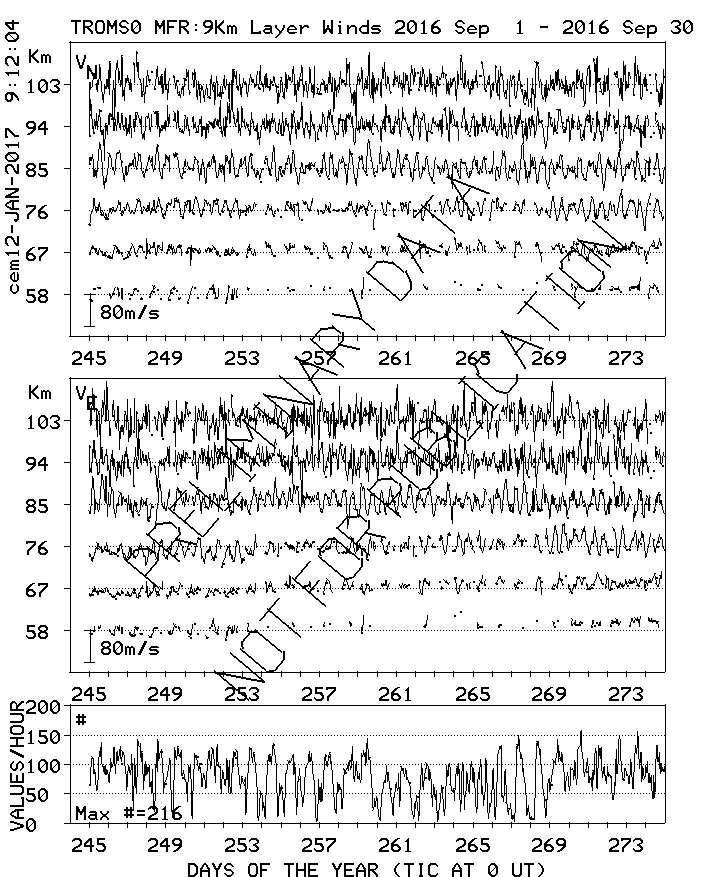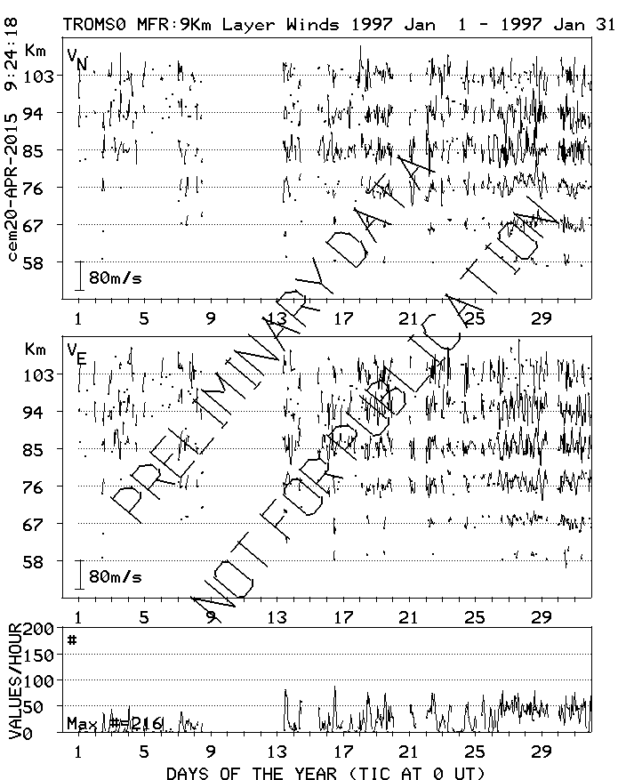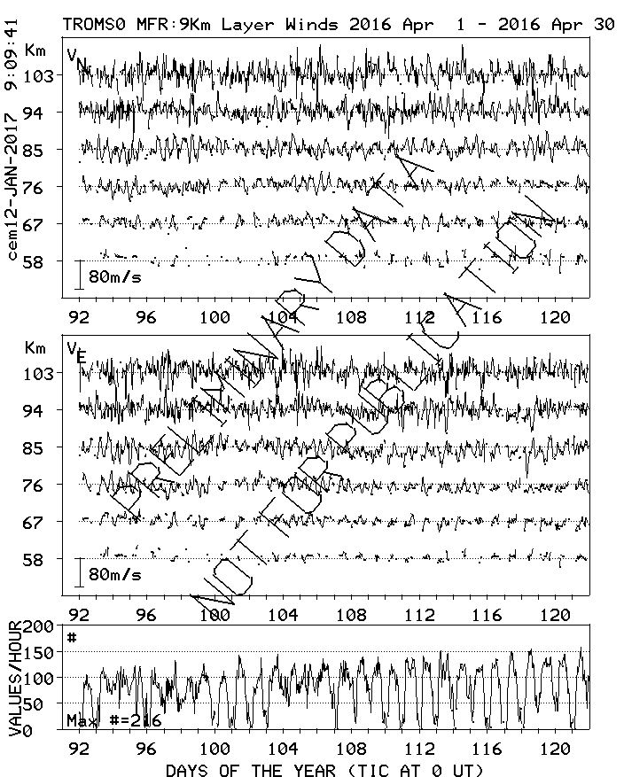 Tromsø (70N,19E) MF Radar Winds, monthly quick look plots