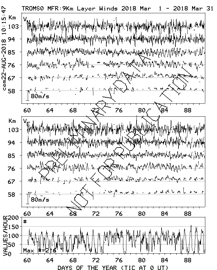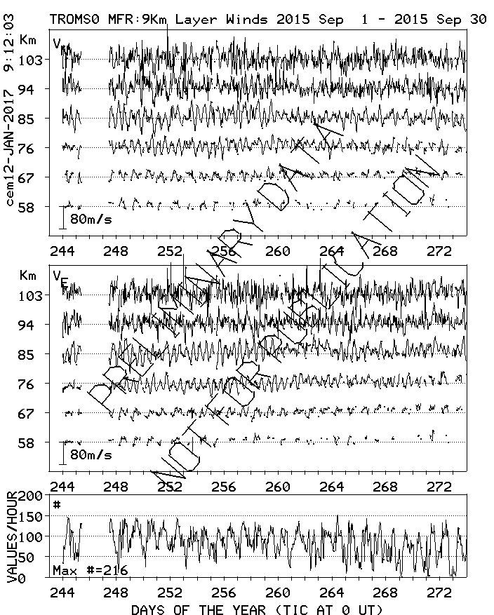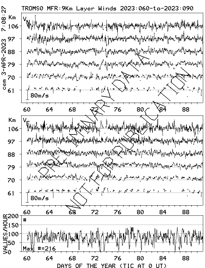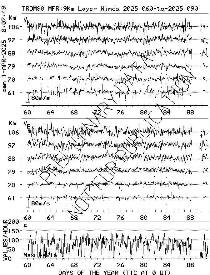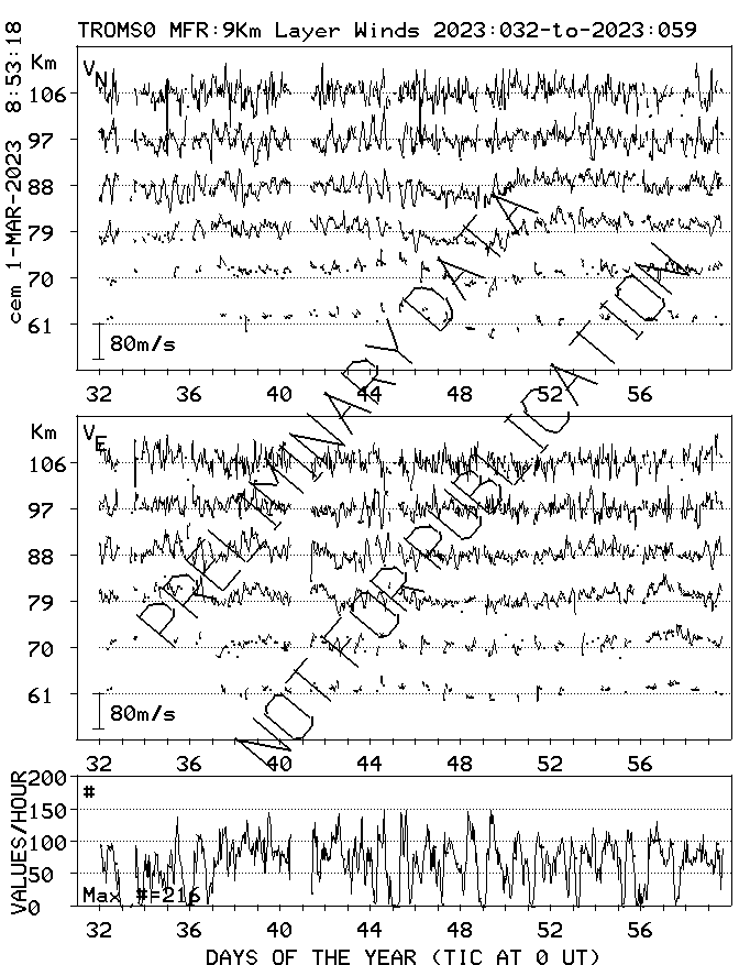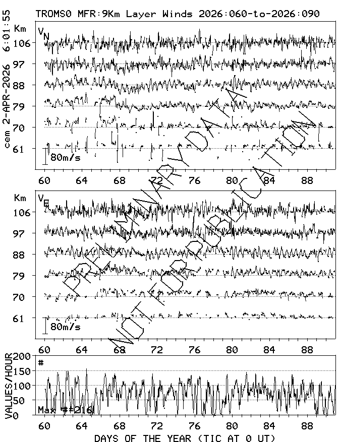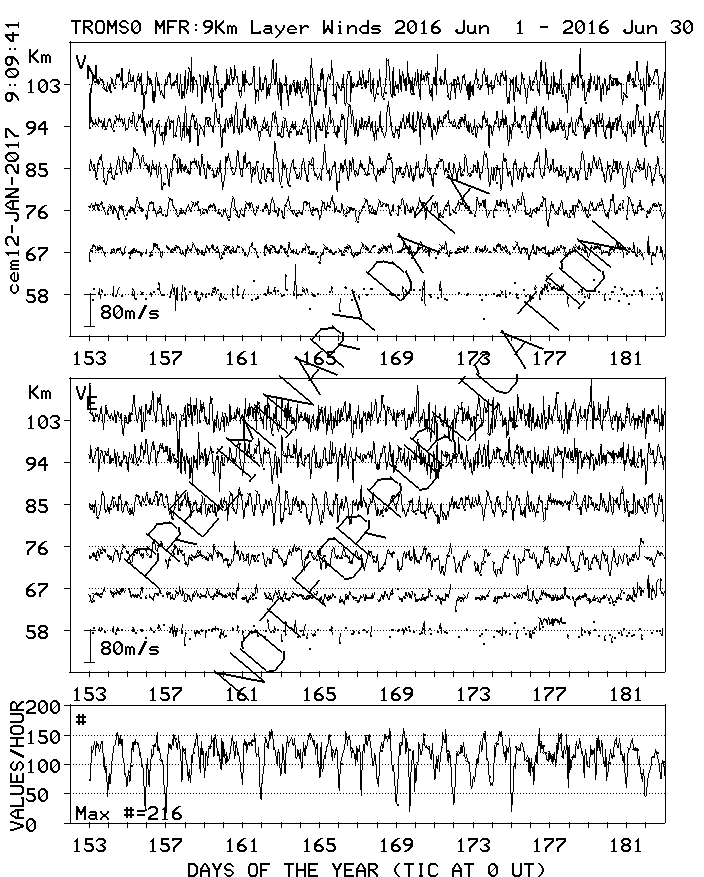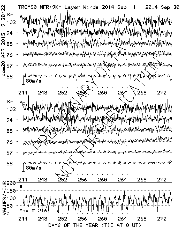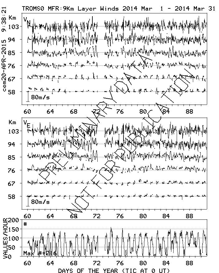 Tromsø (70N,19E) MF Radar Winds, monthly quick look plots