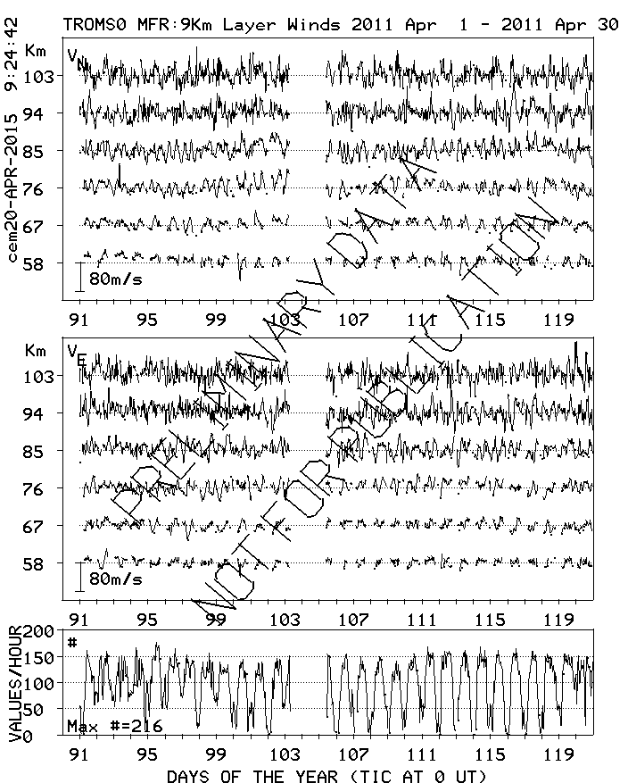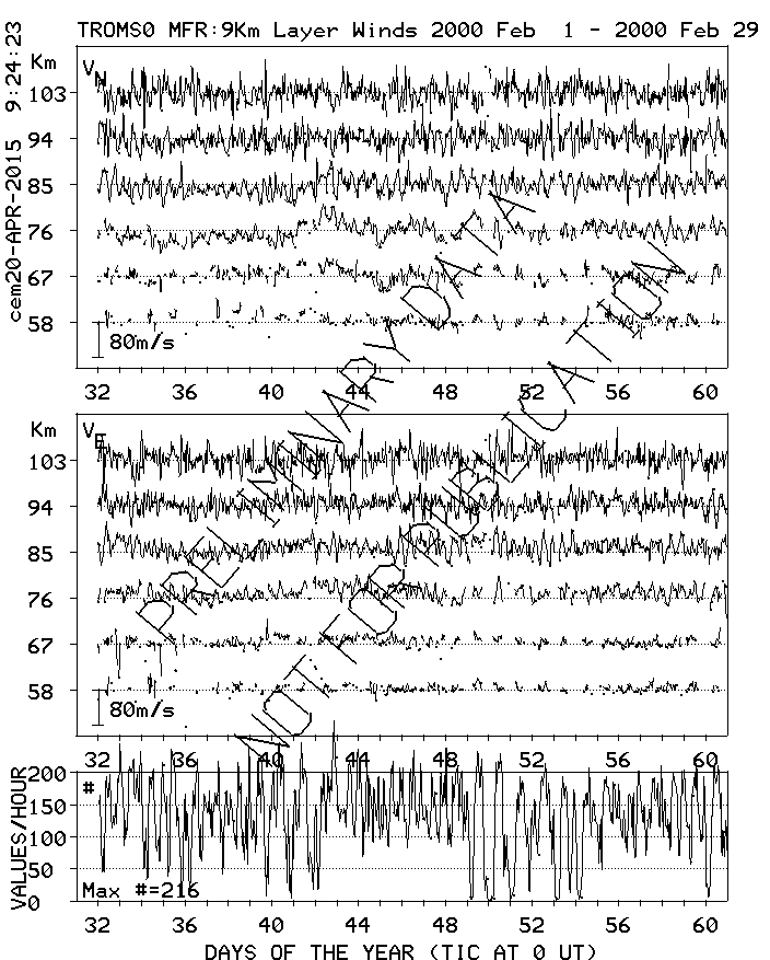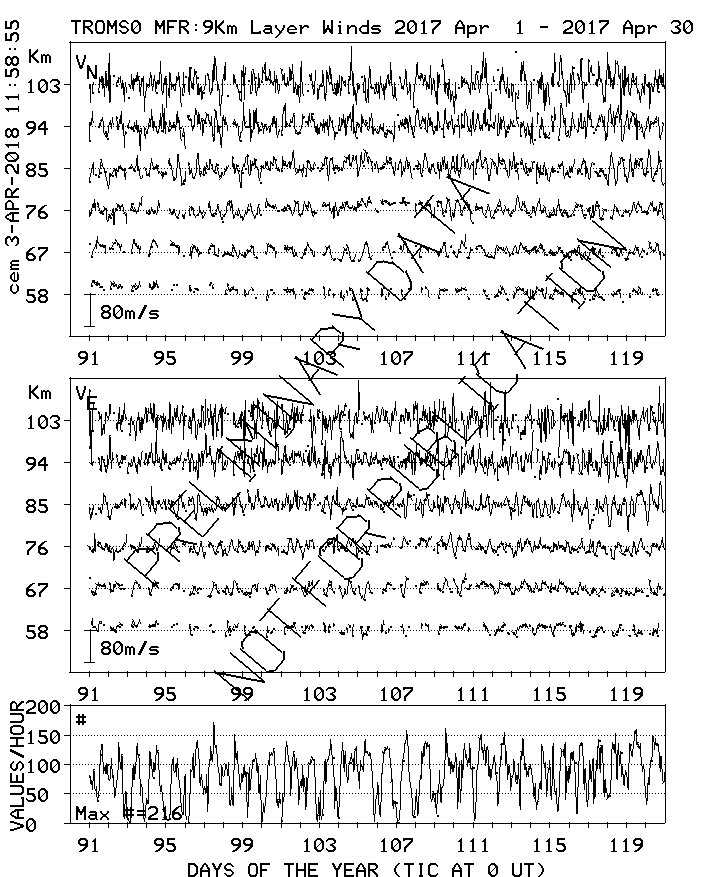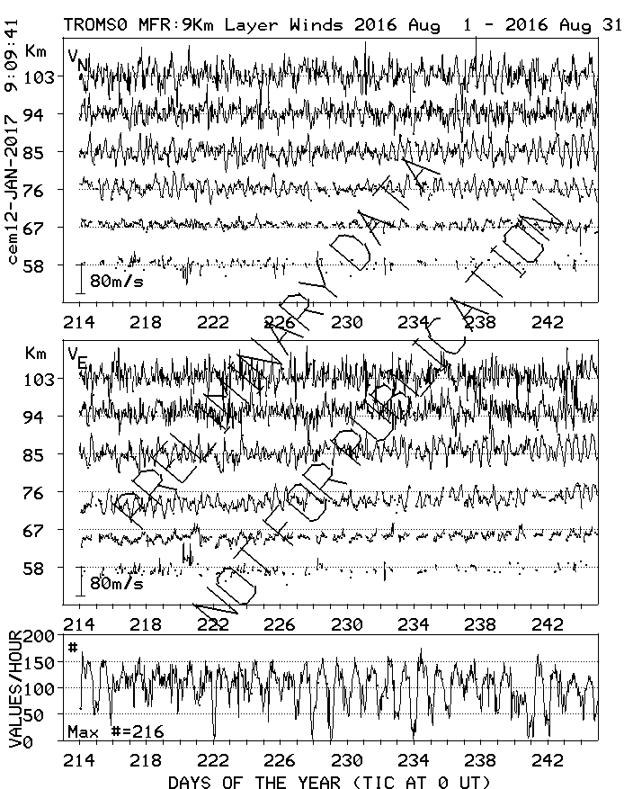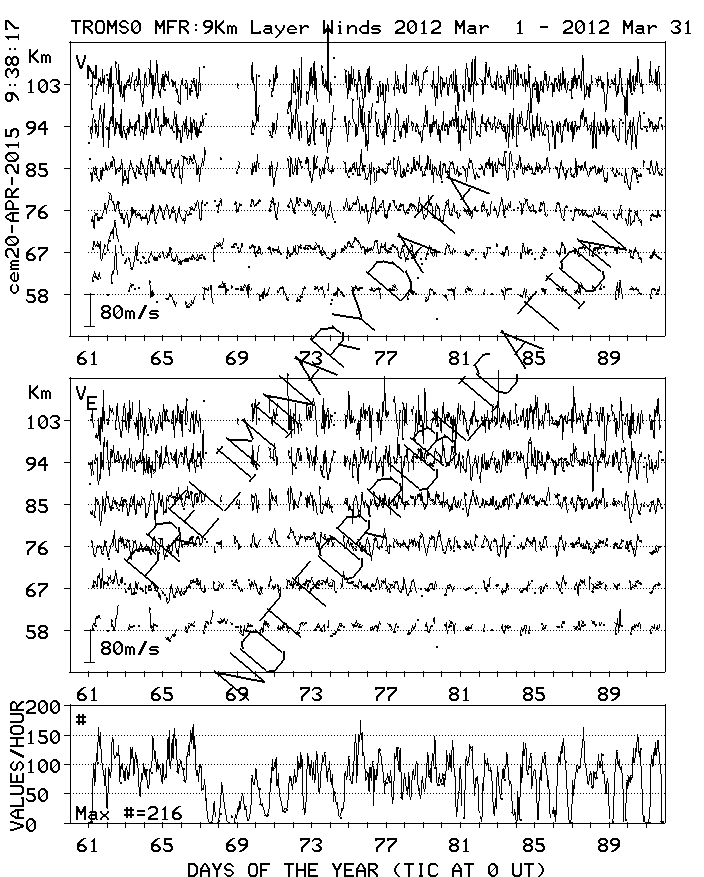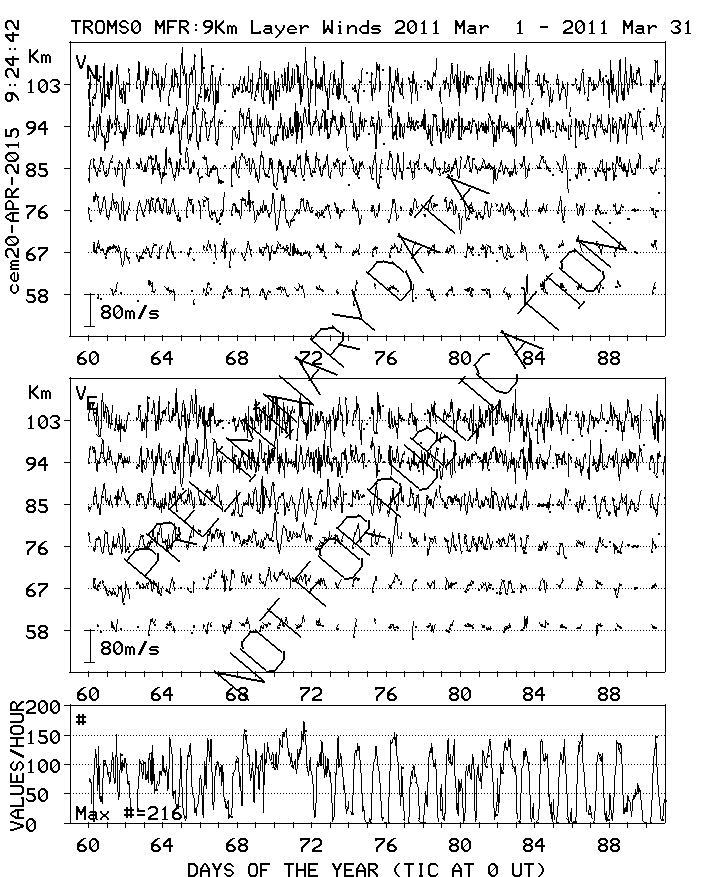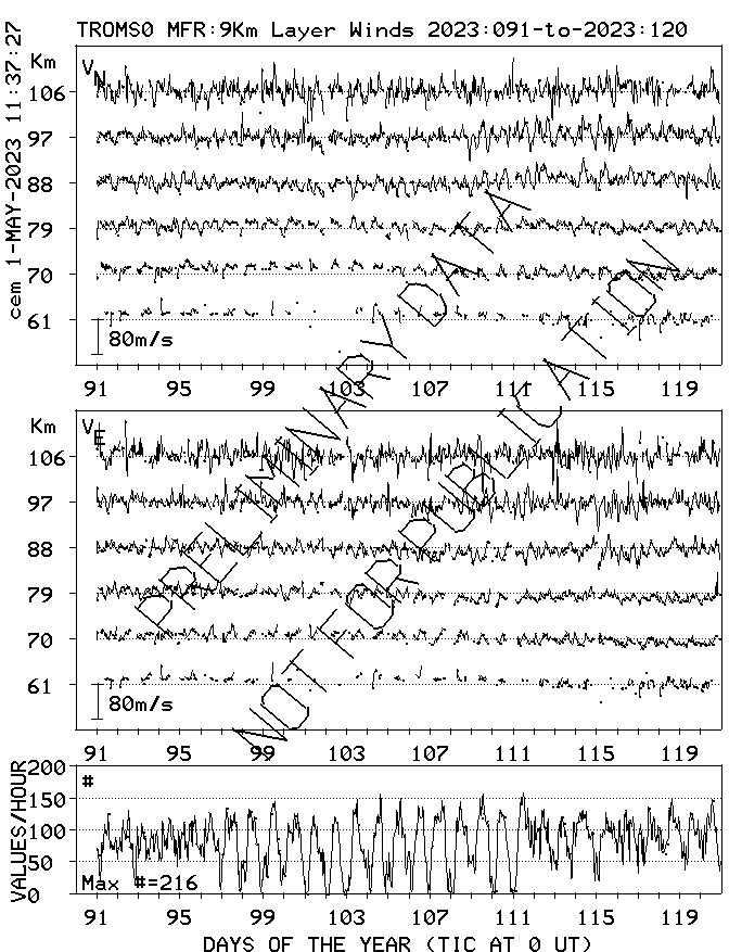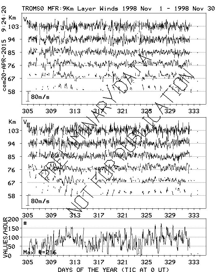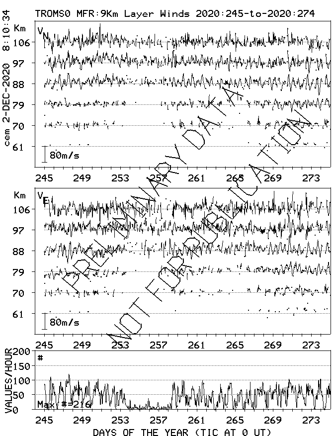 Tromsø (70N,19E) MF Radar Winds, monthly quick look plots