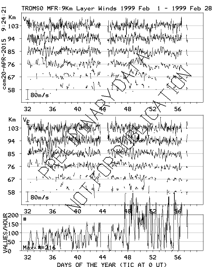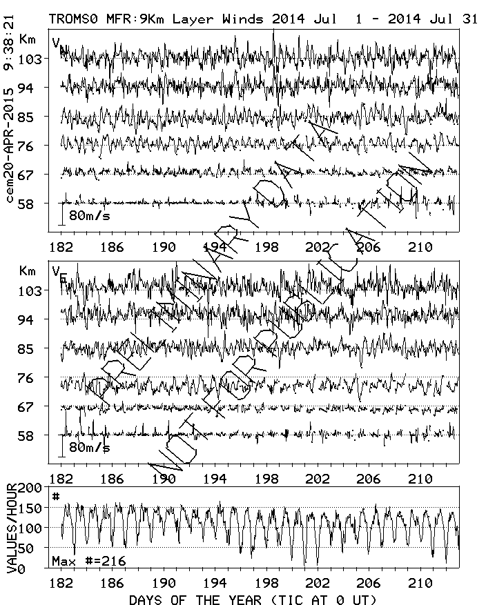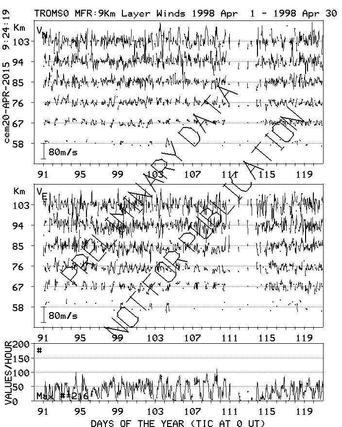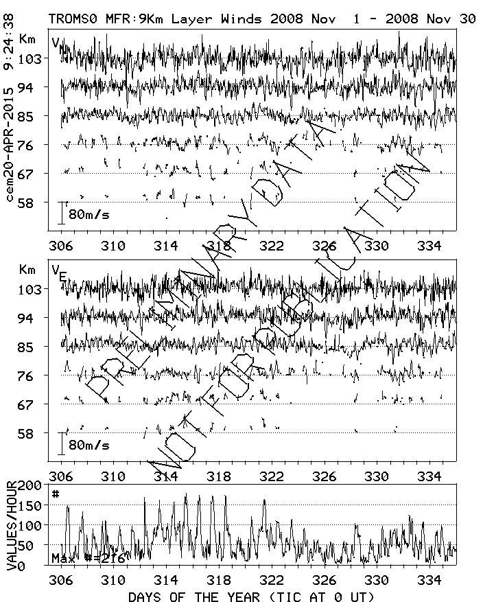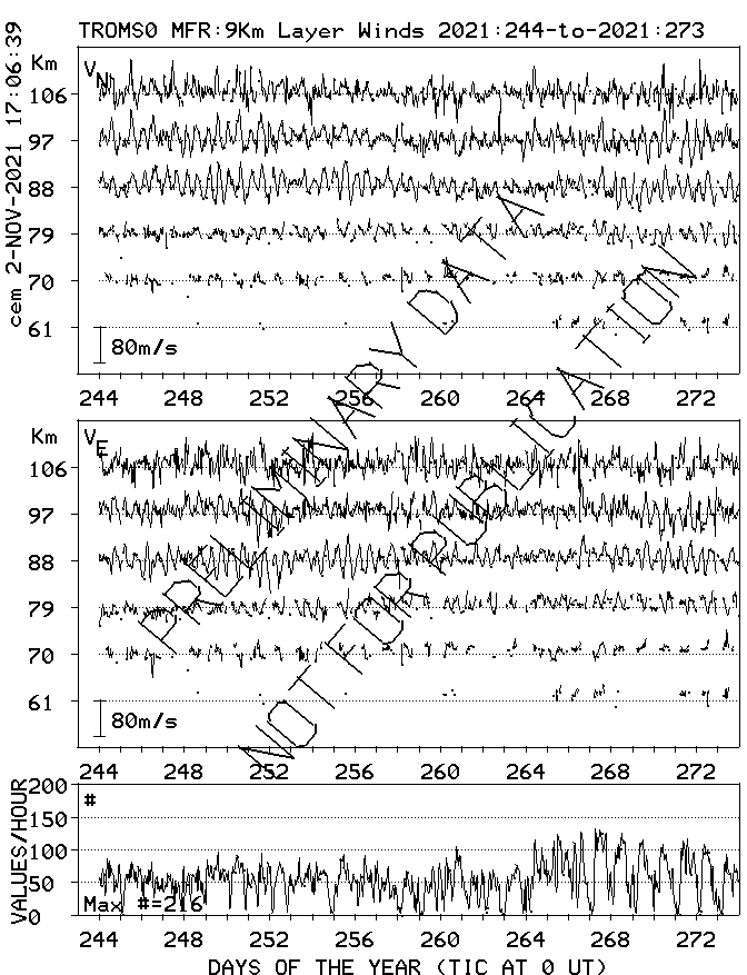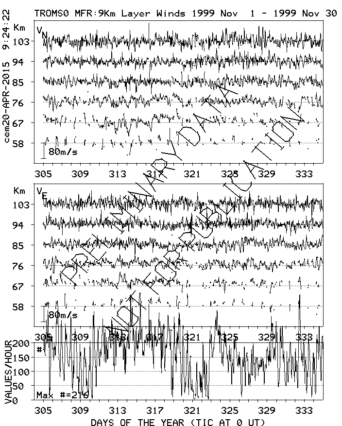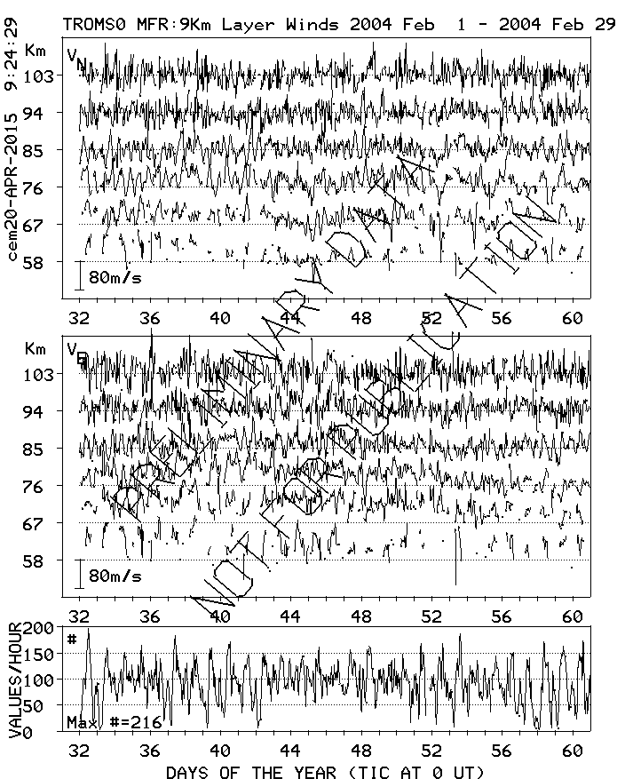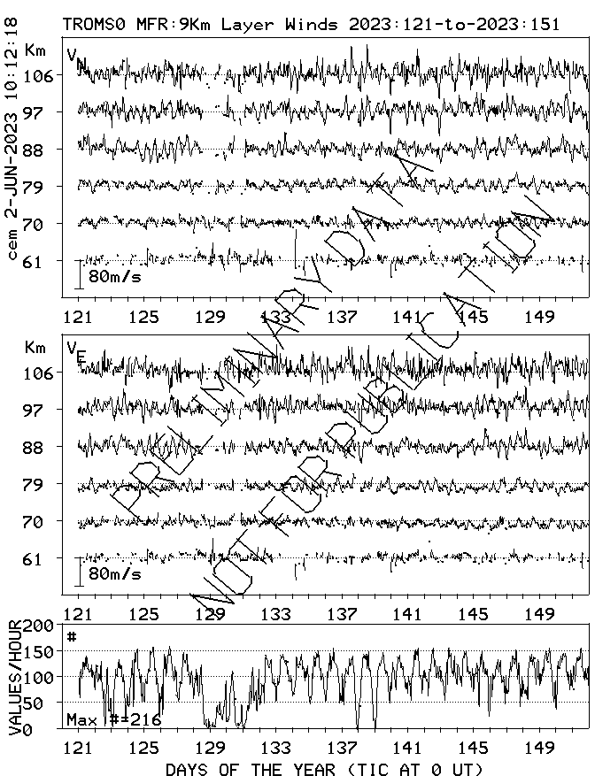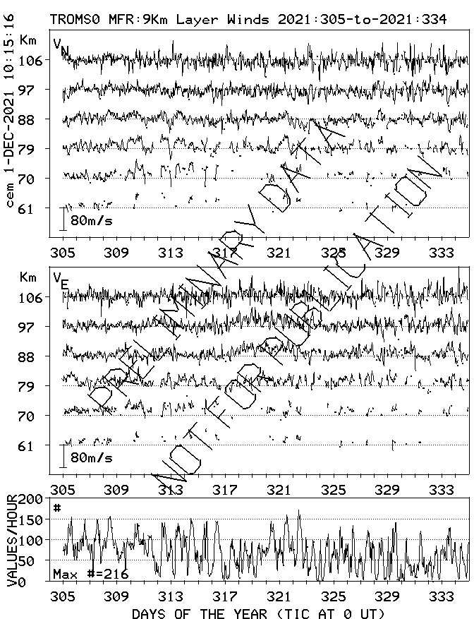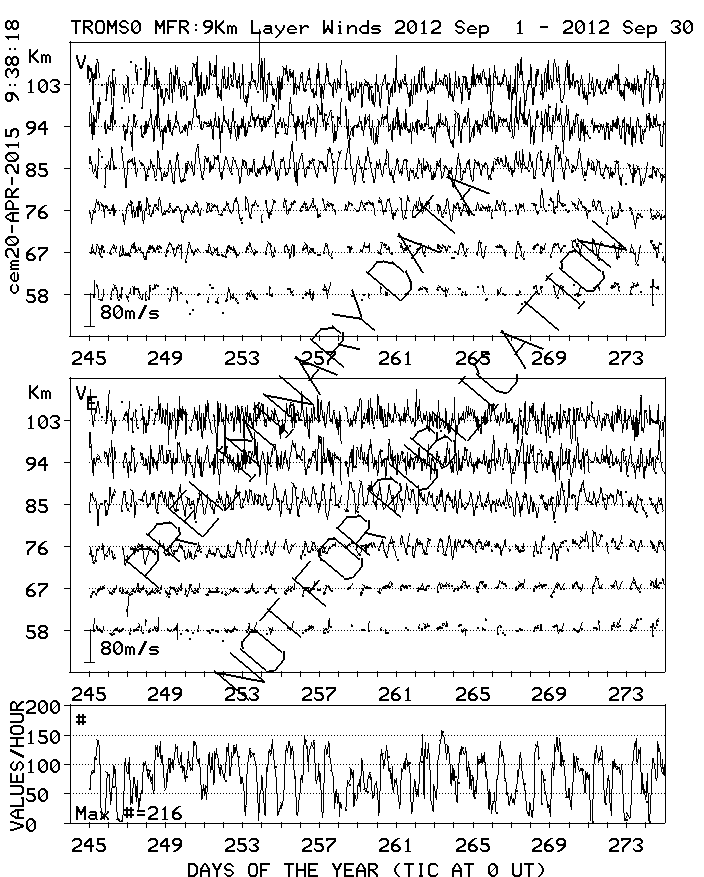 Tromsø (70N,19E) MF Radar Winds, monthly quick look plots