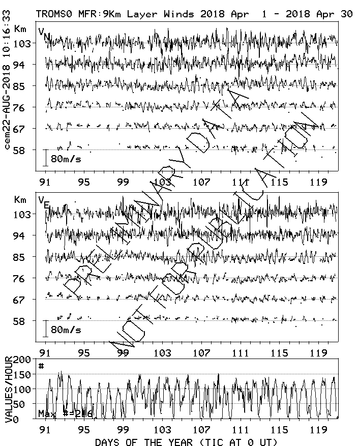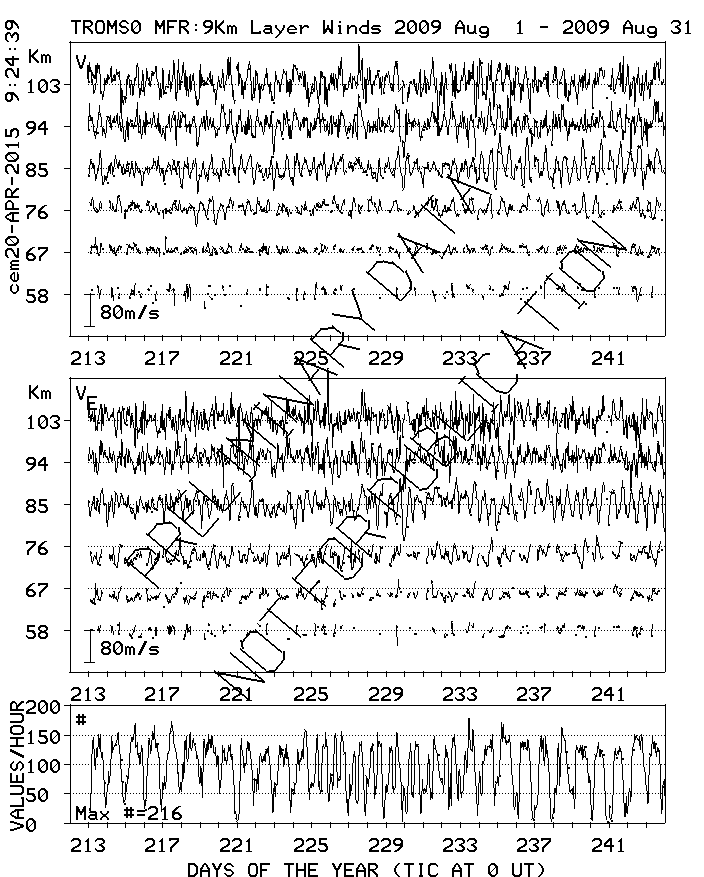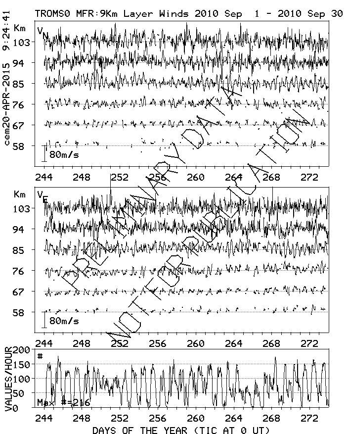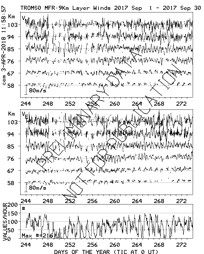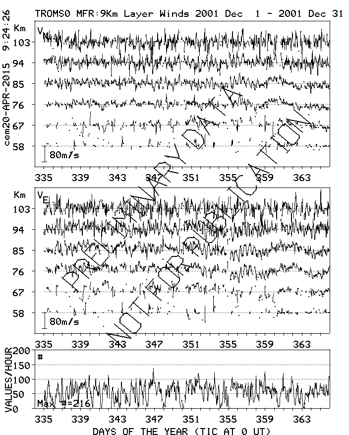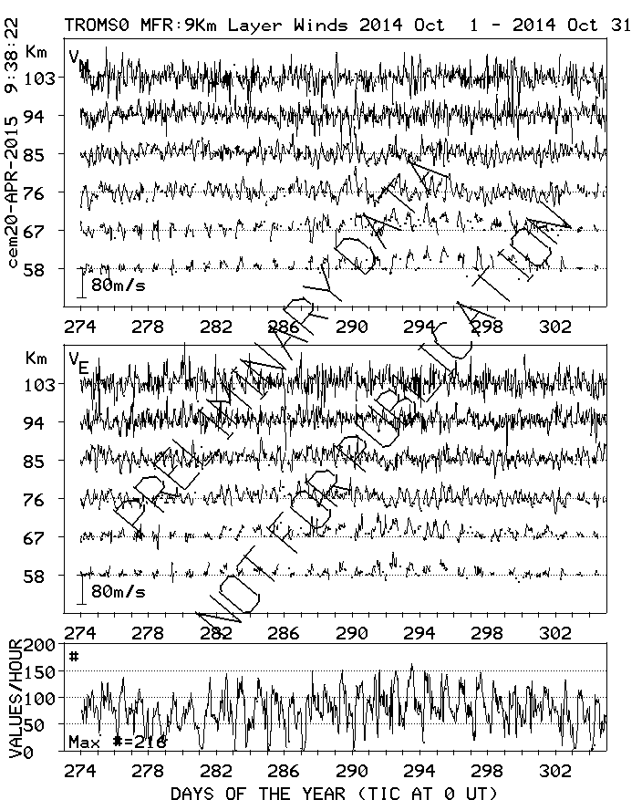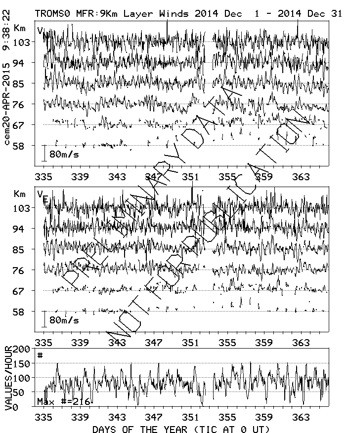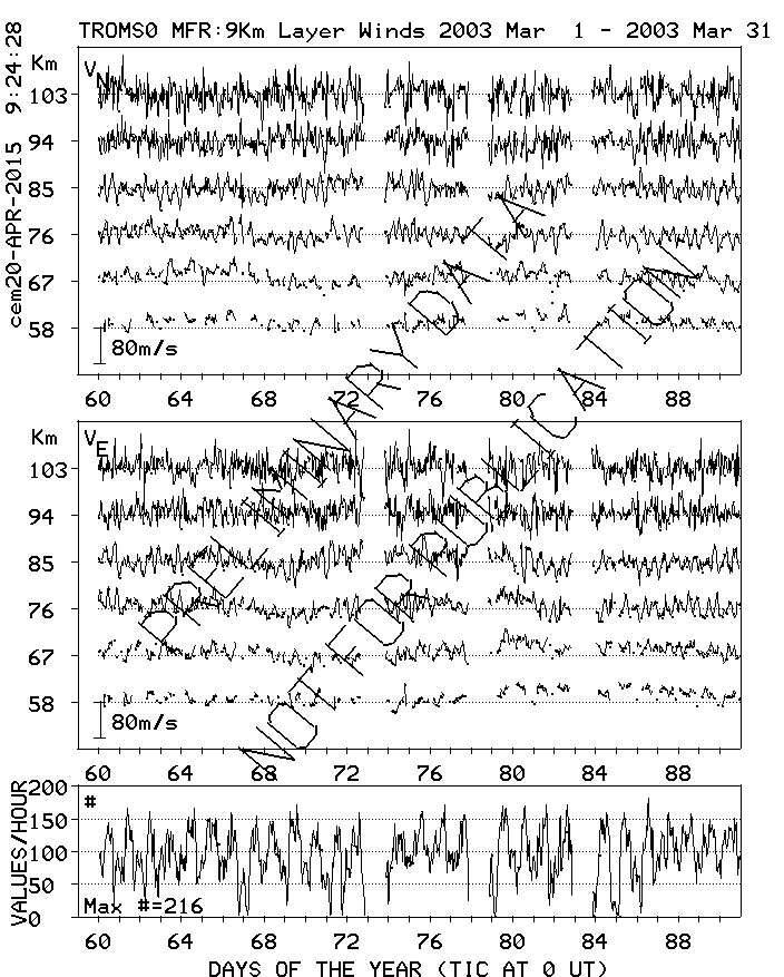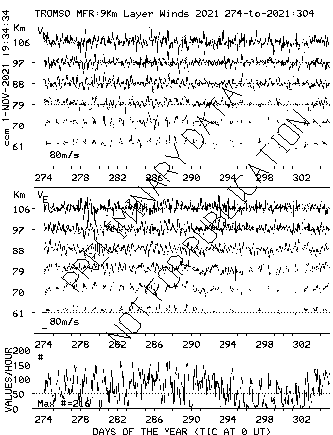 Tromsø (70N,19E) MF Radar Winds, monthly quick look plots