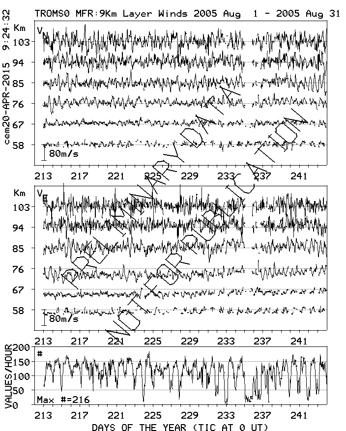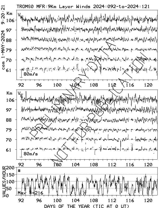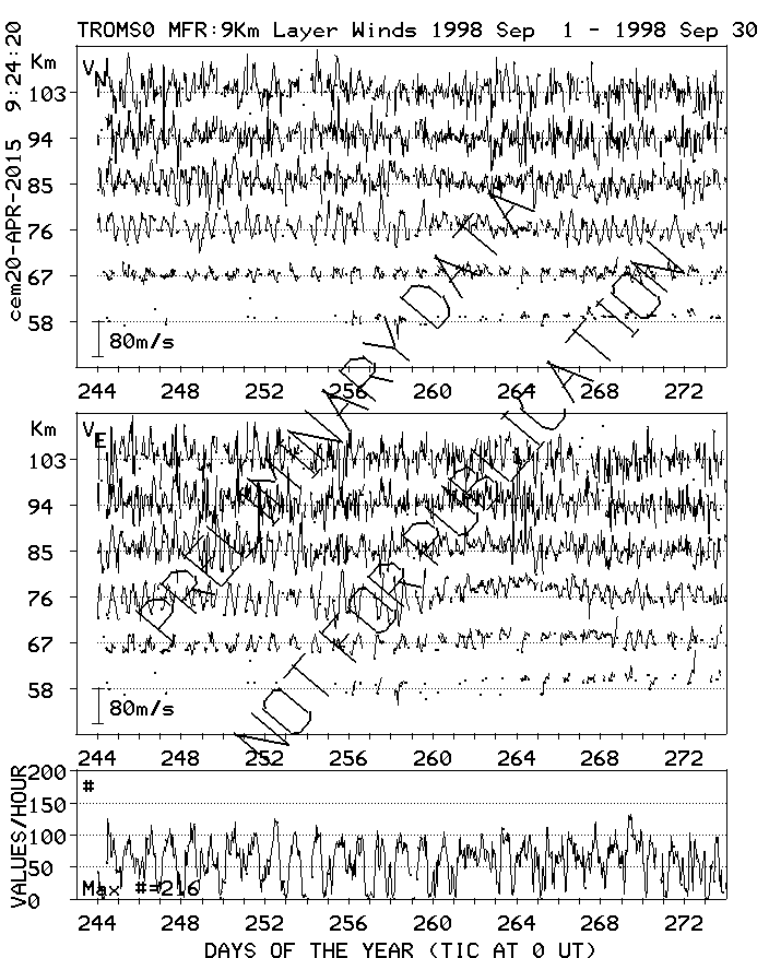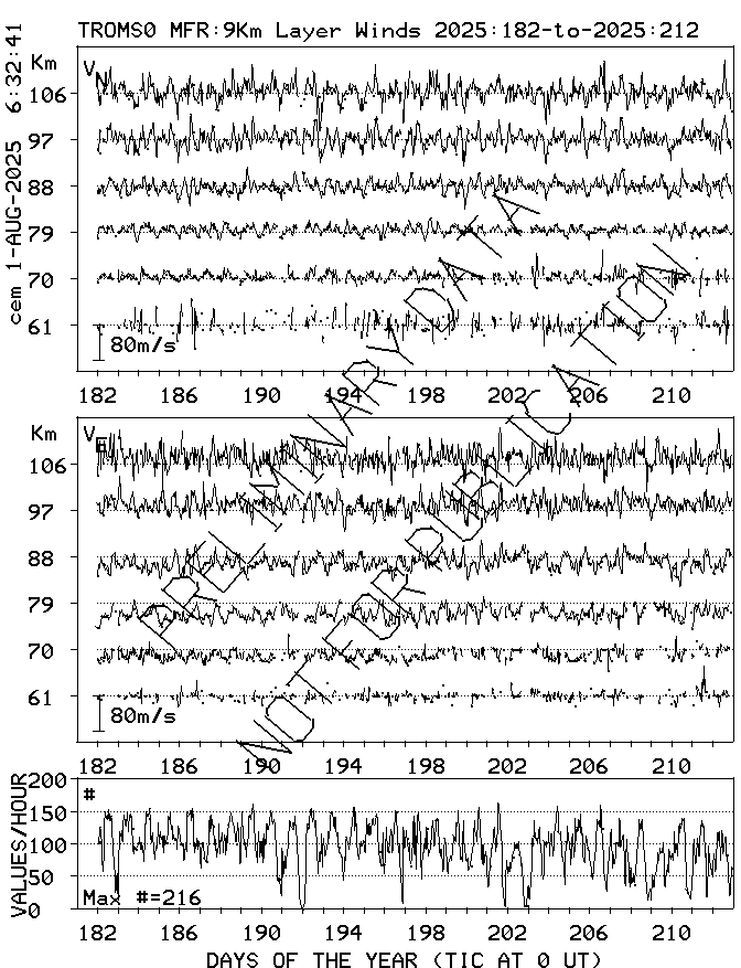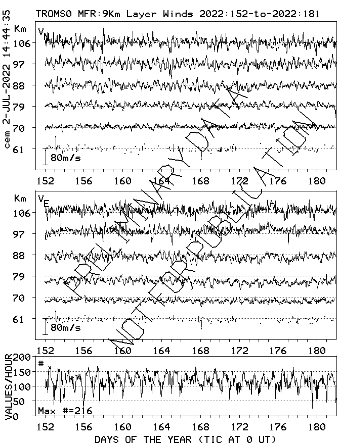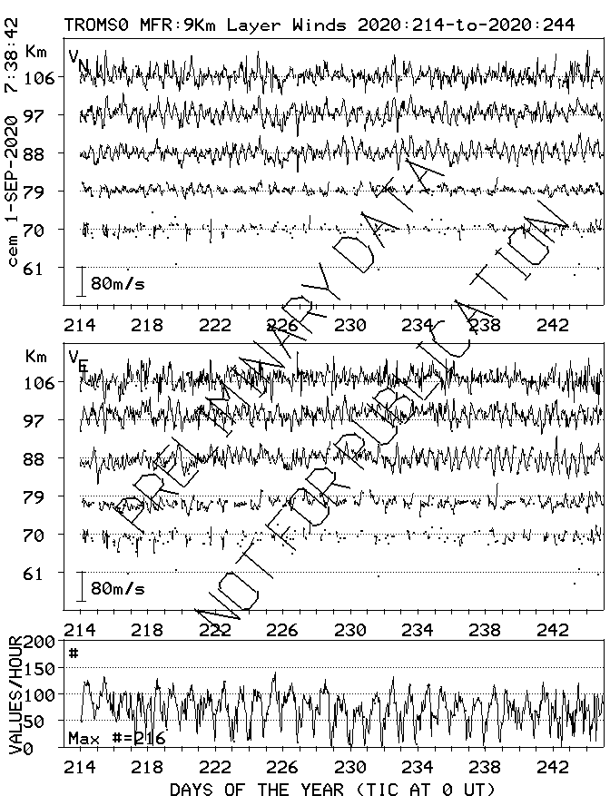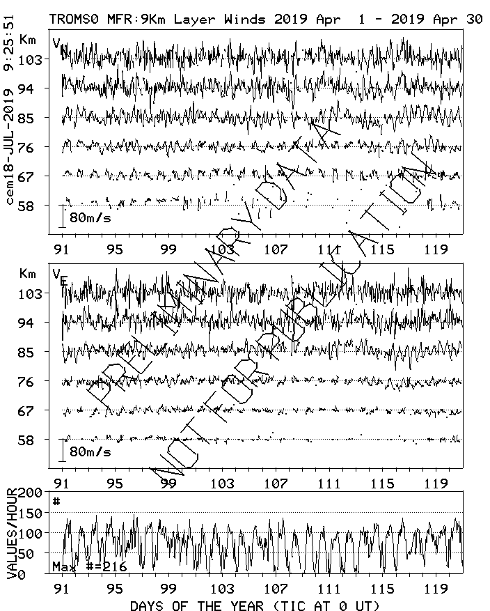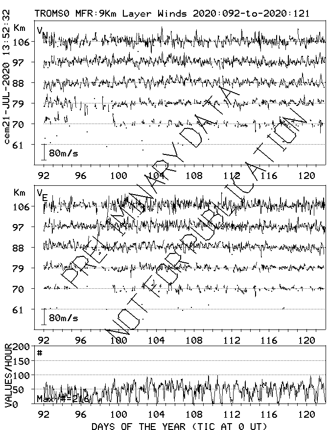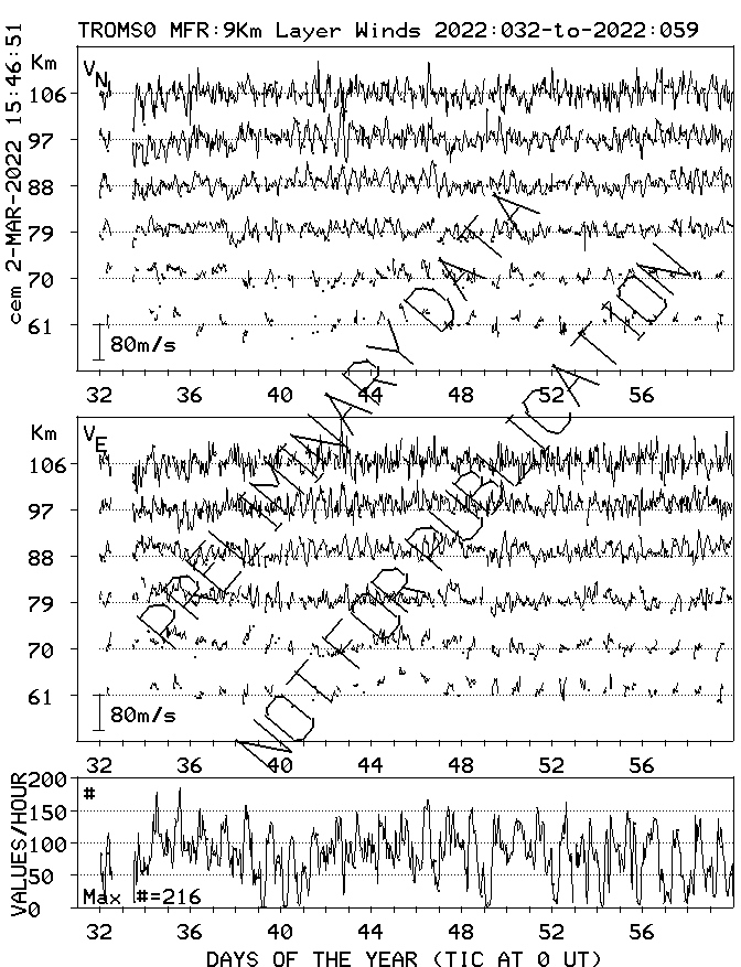 Tromsø (70N,19E) MF Radar Winds, monthly quick look plots