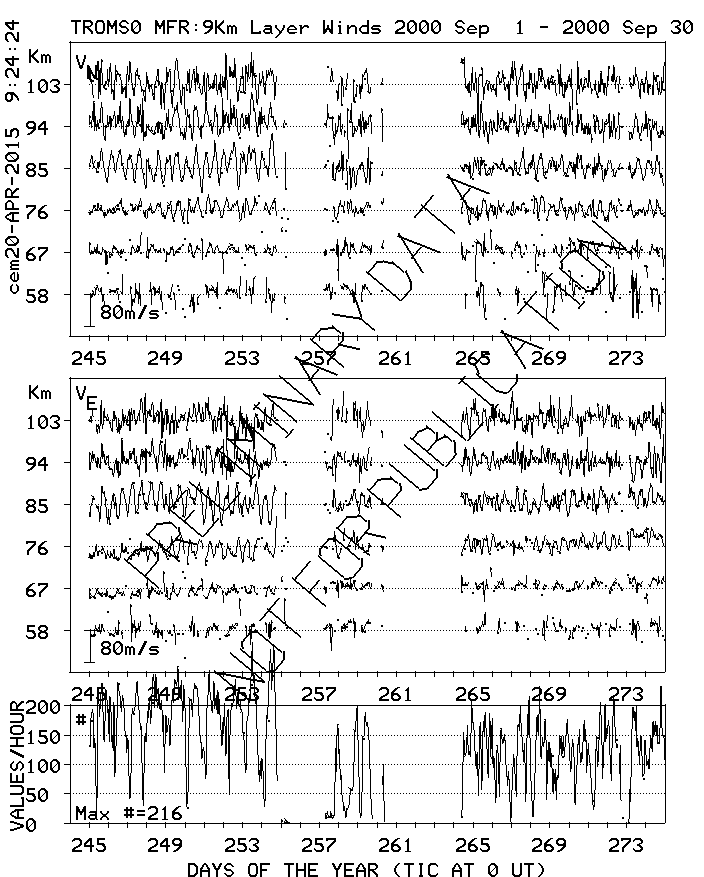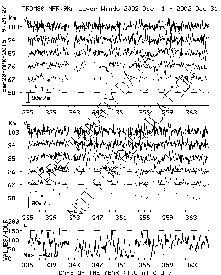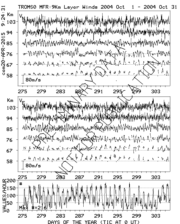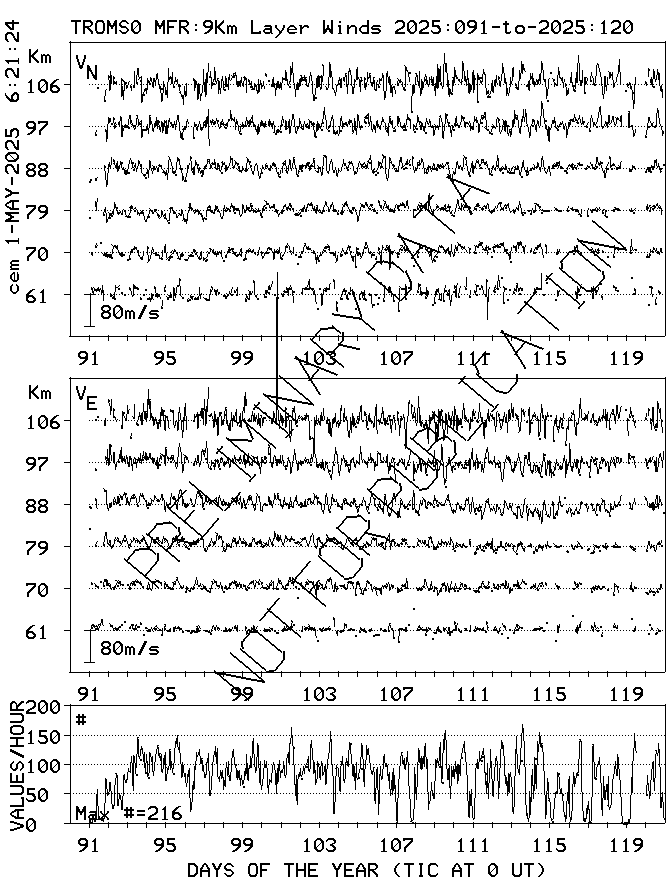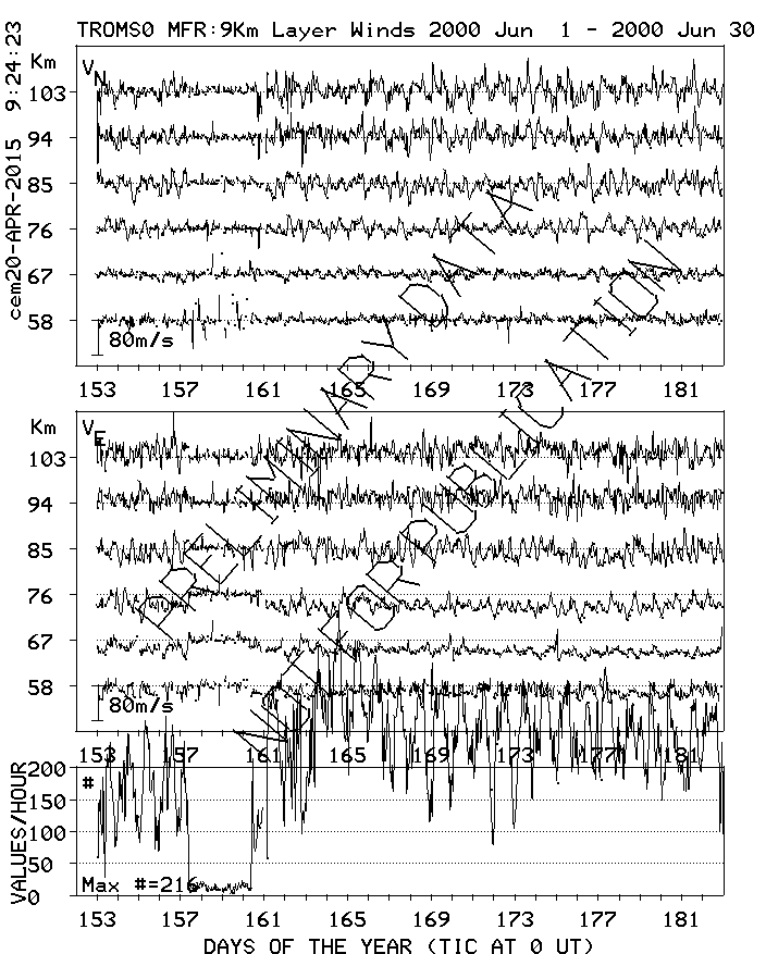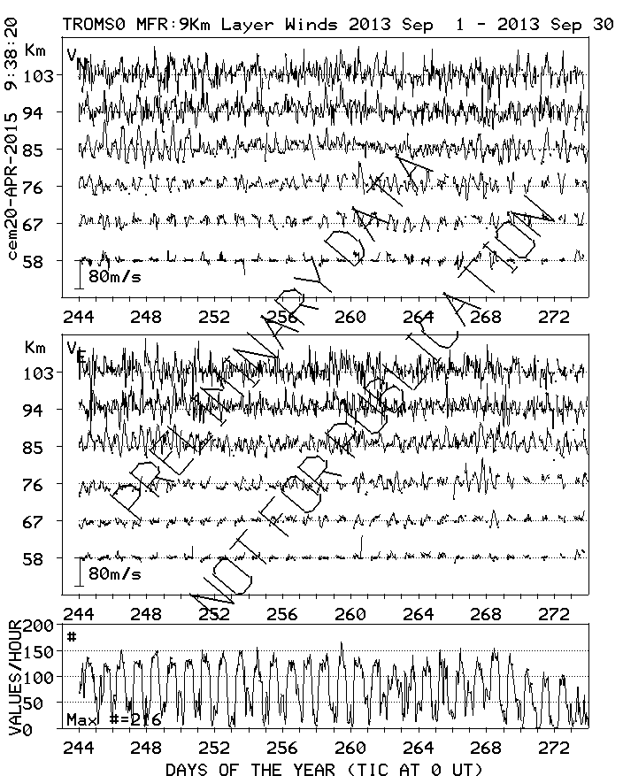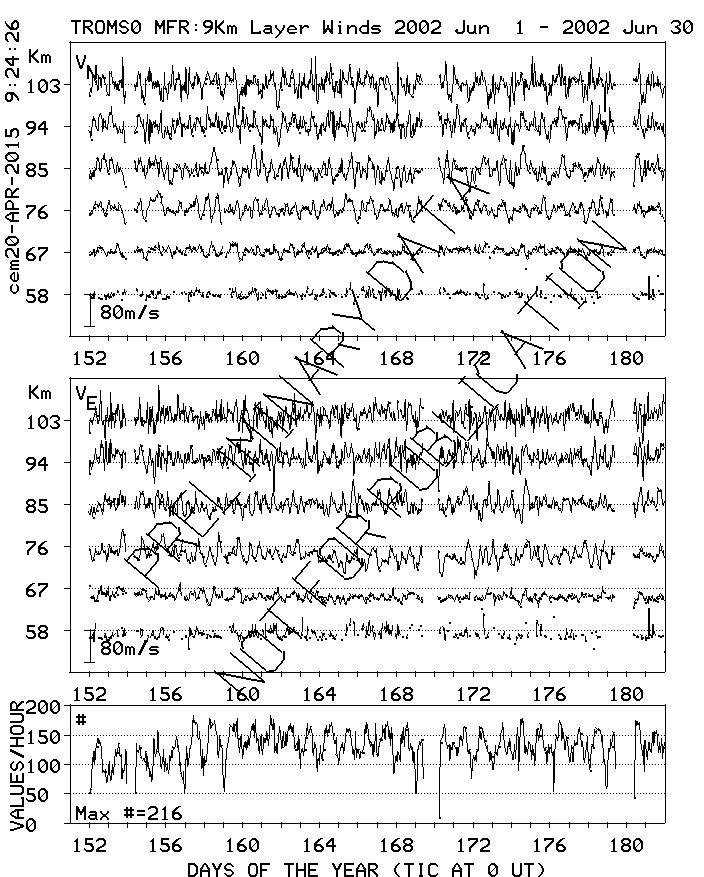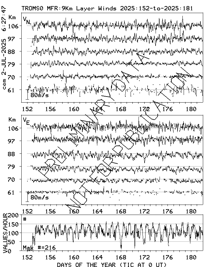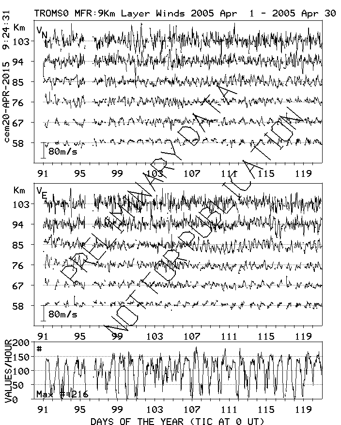 Tromsø (70N,19E) MF Radar Winds, monthly quick look plots