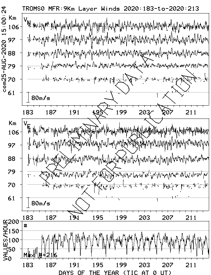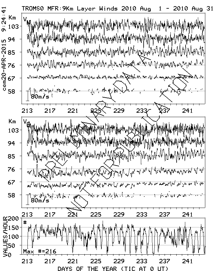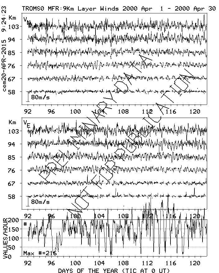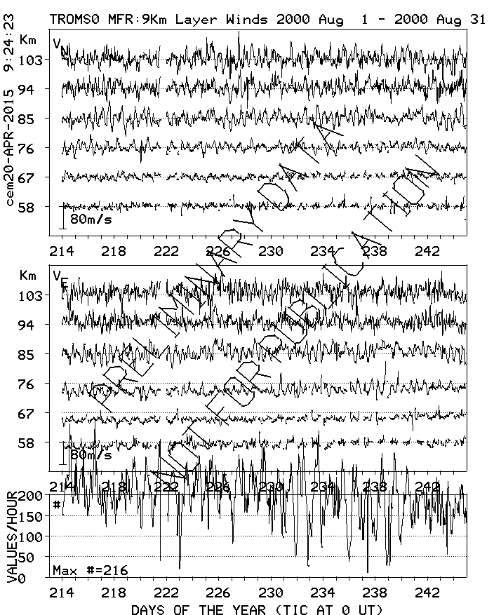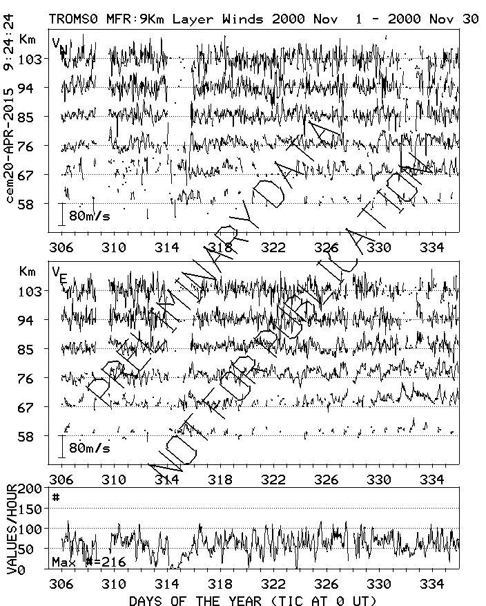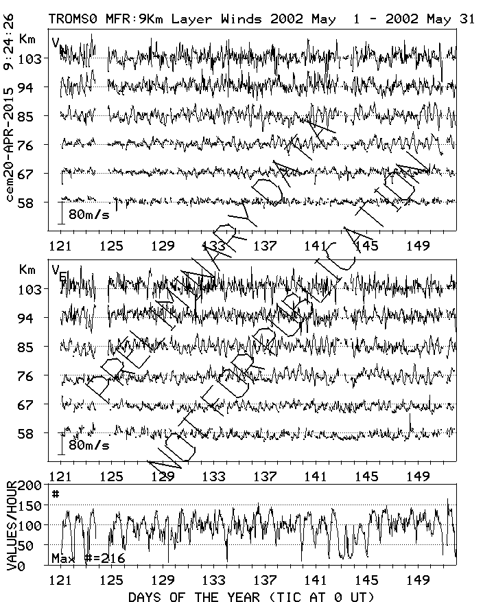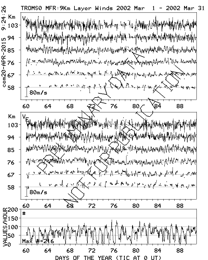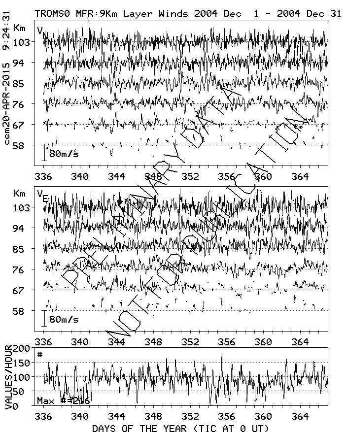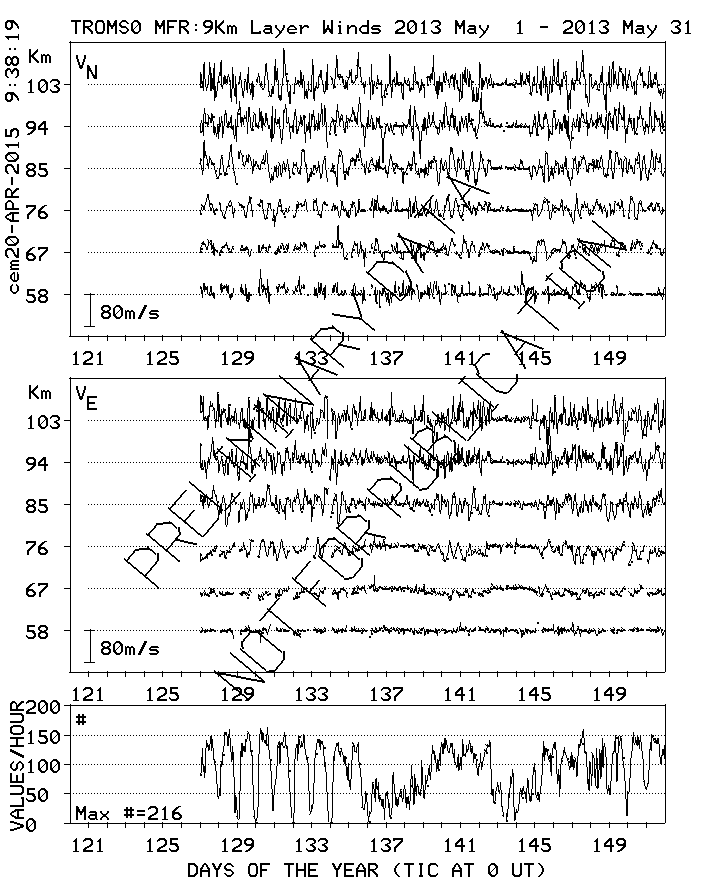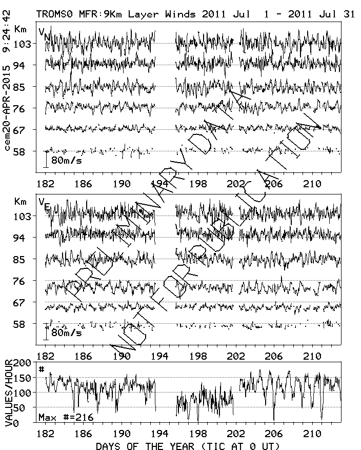 Tromsø (70N,19E) MF Radar Winds, monthly quick look plots