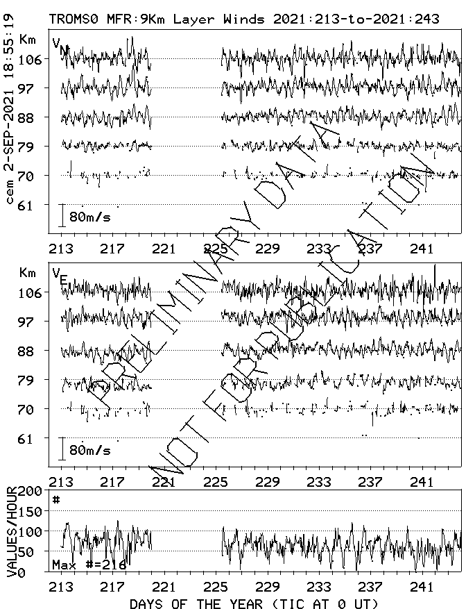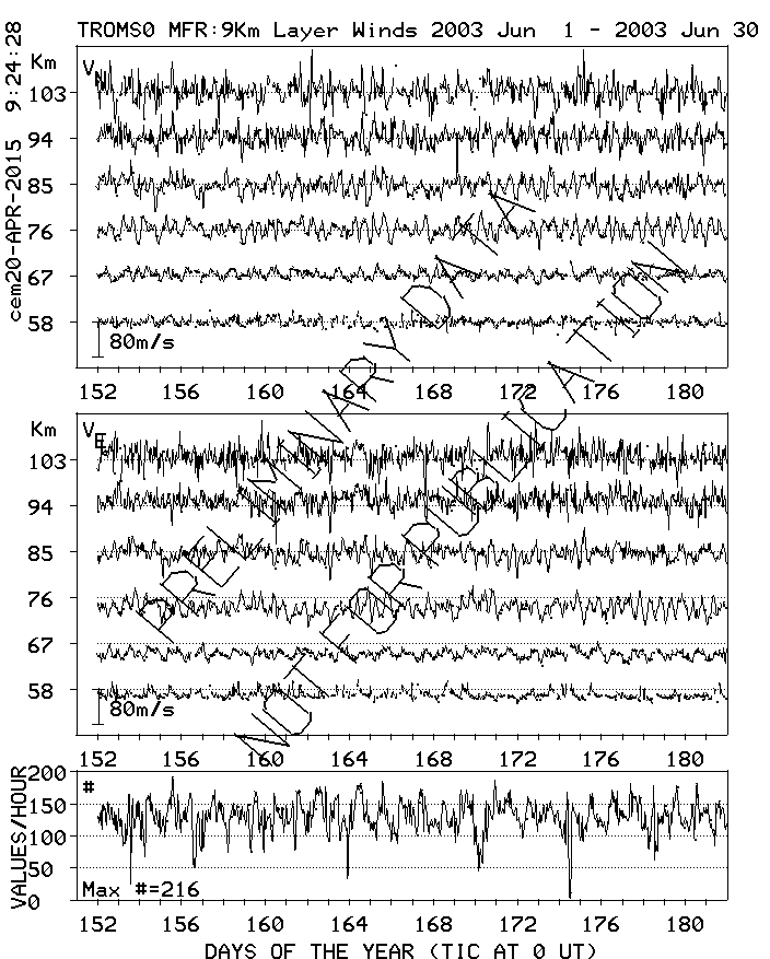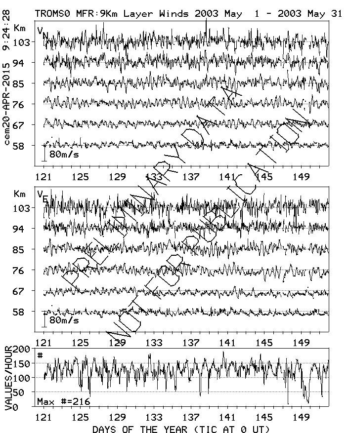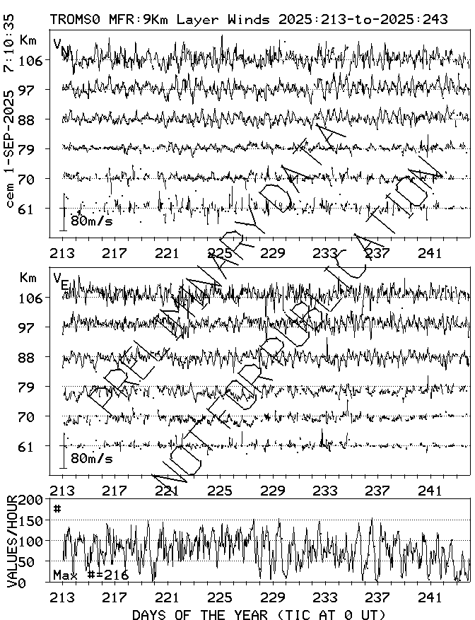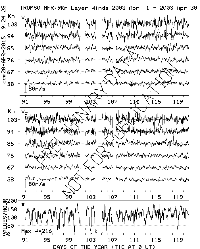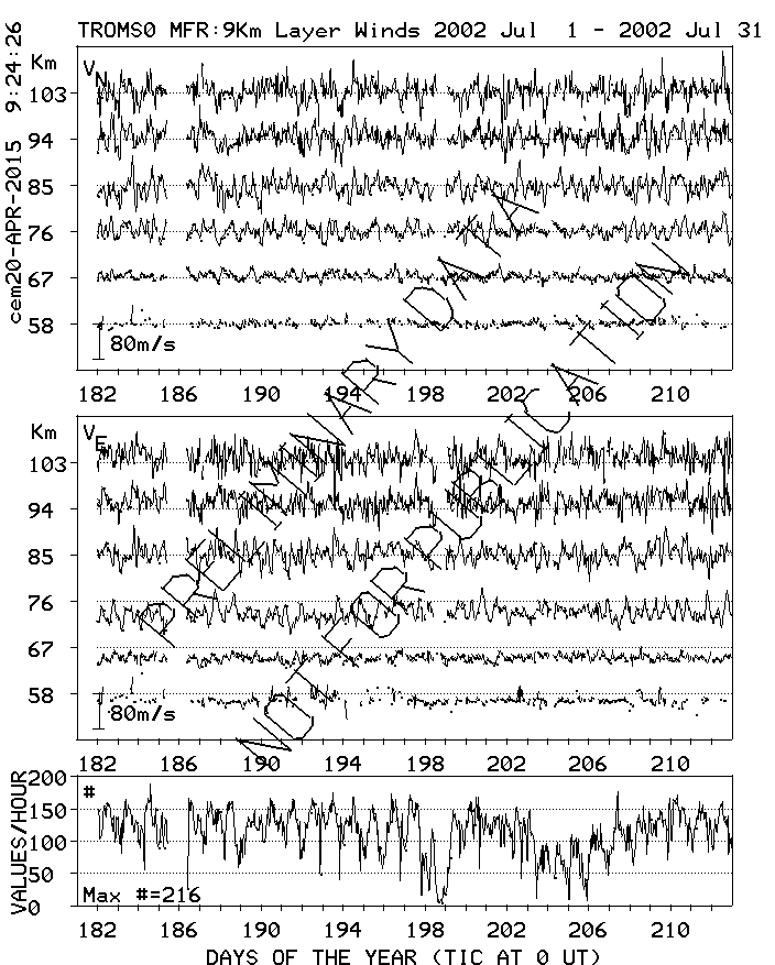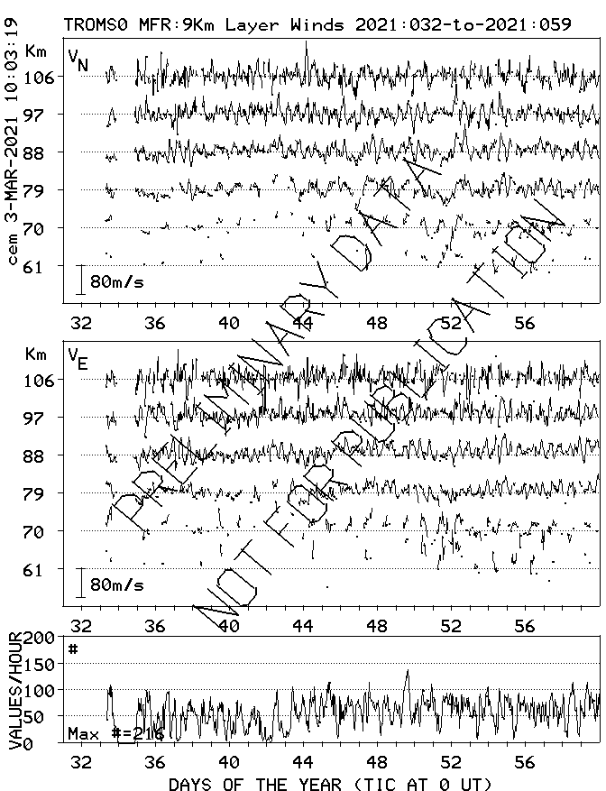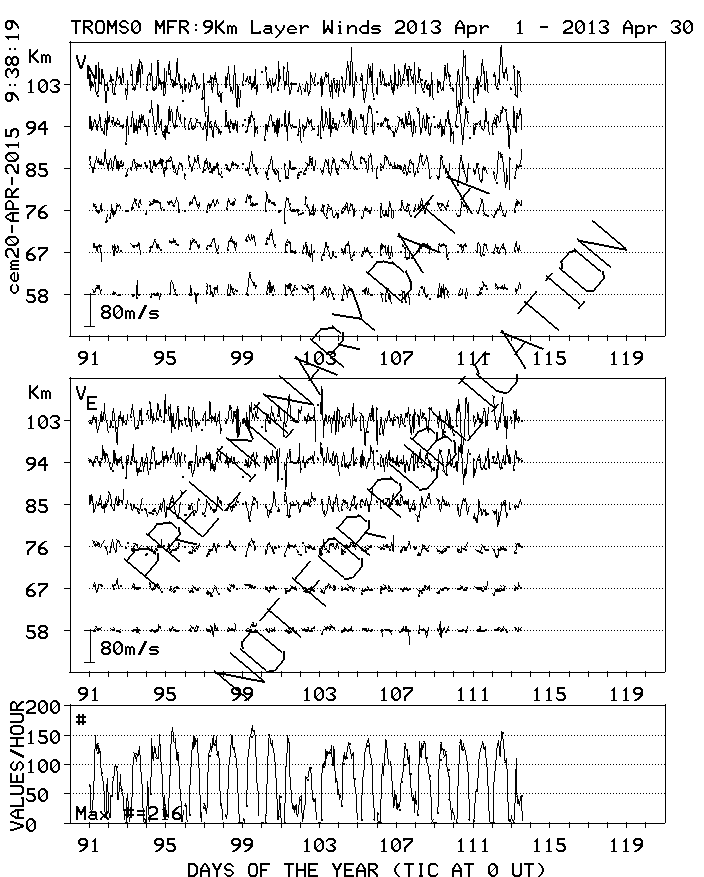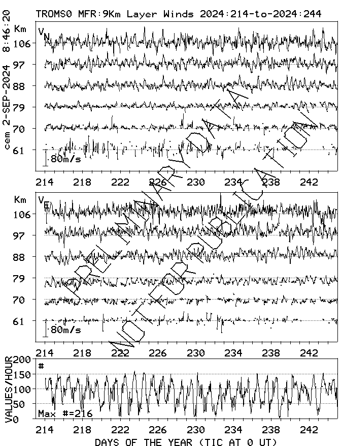 Tromsø (70N,19E) MF Radar Winds, monthly quick look plots