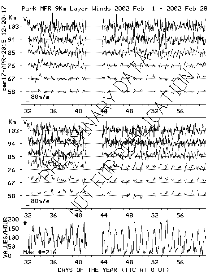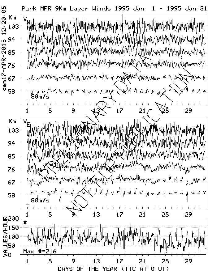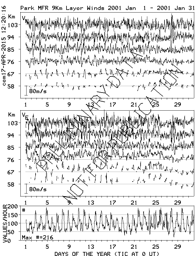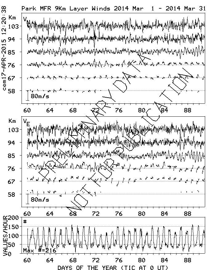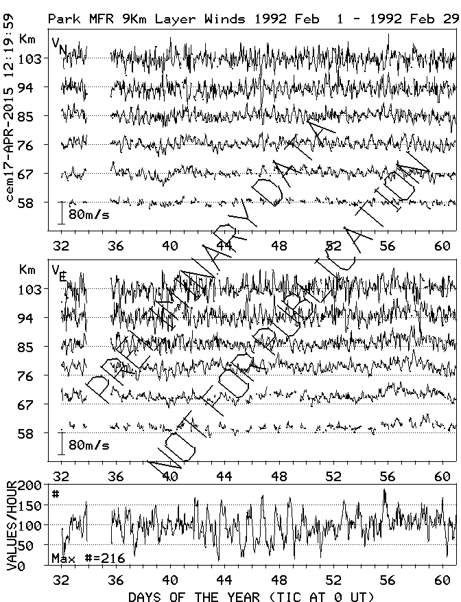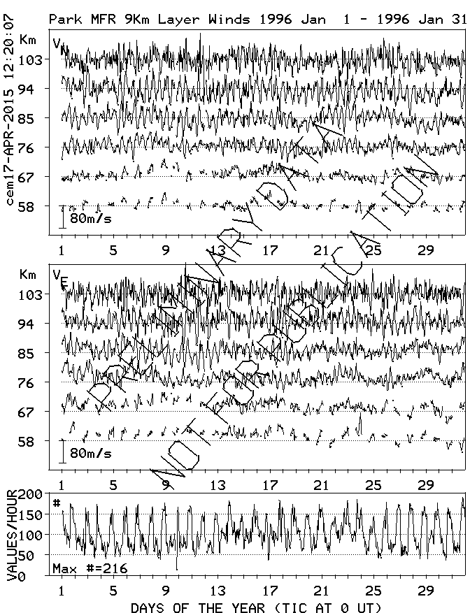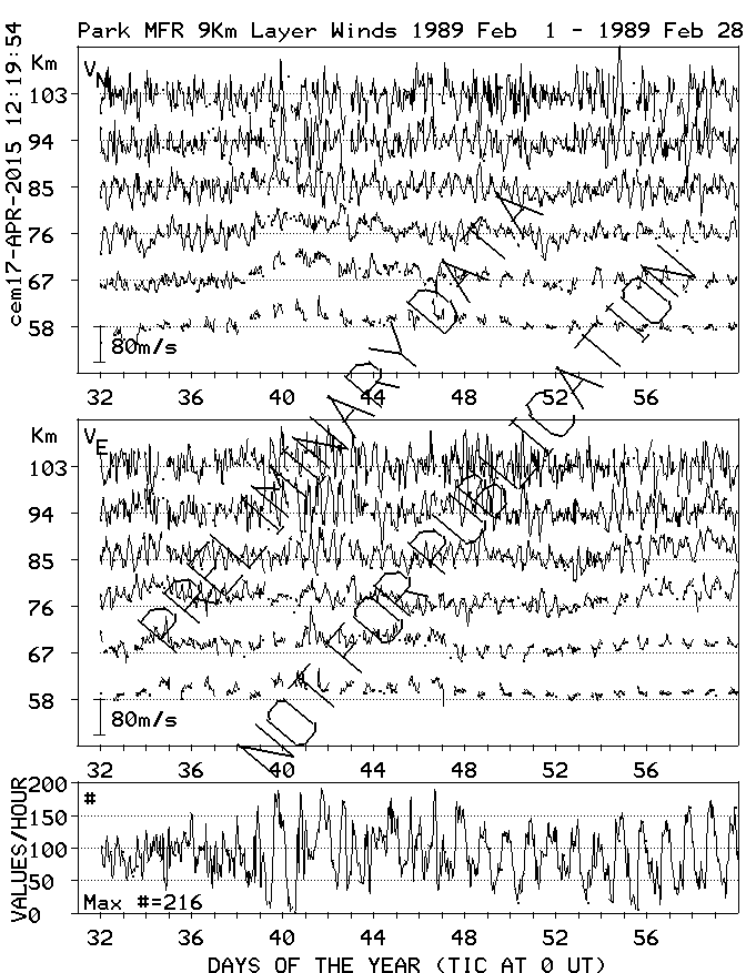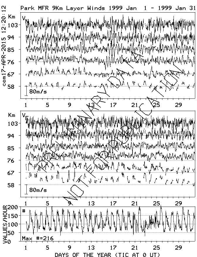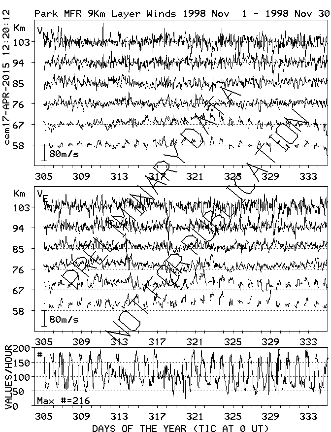 Saskatoon (52N,107W) MF Radar Winds, monthly quick look plots