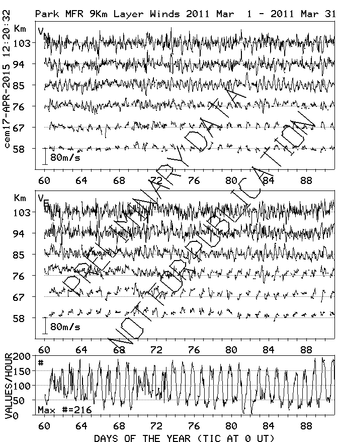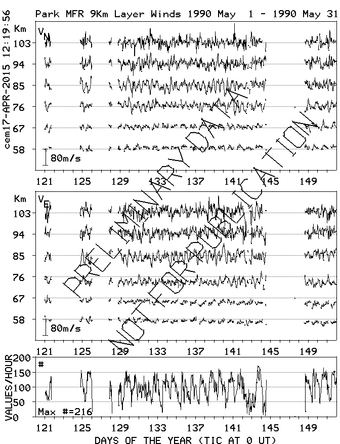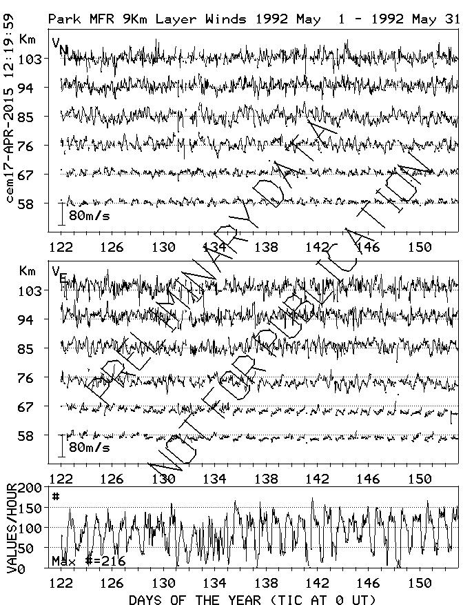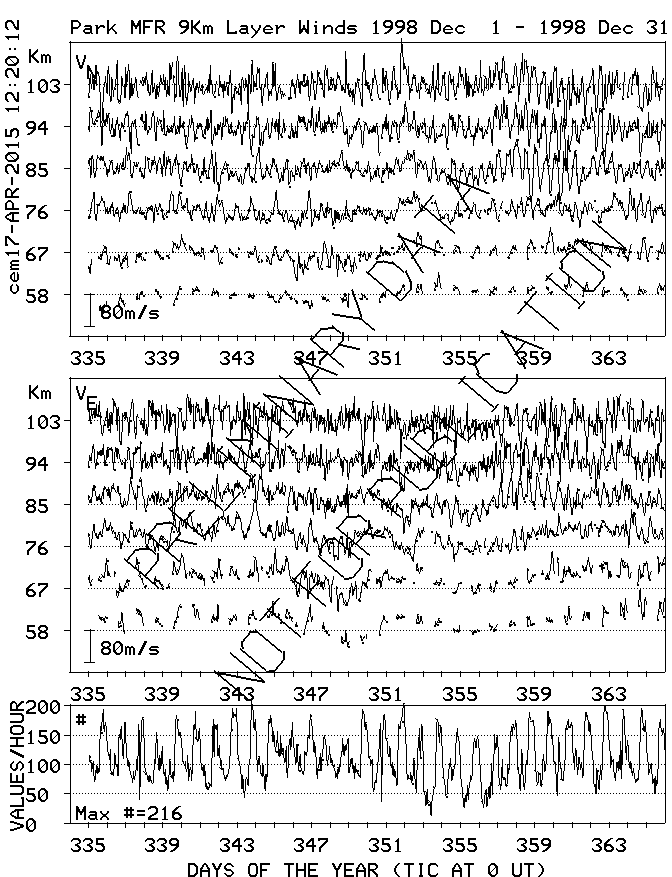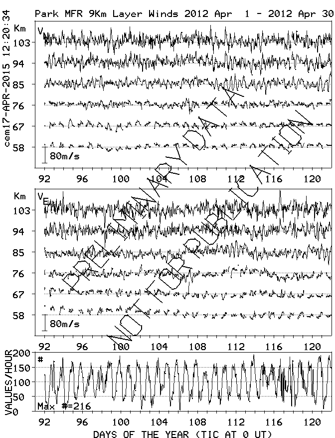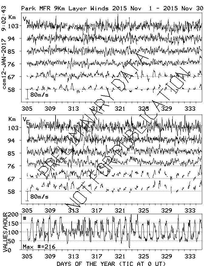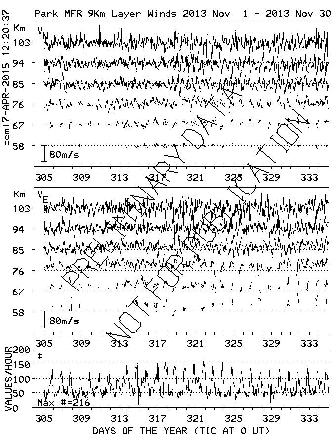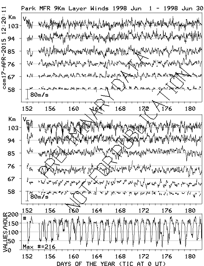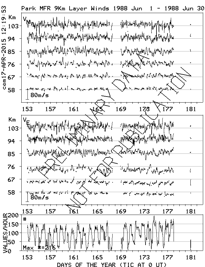 Saskatoon (52N,107W) MF Radar Winds, monthly quick look plots