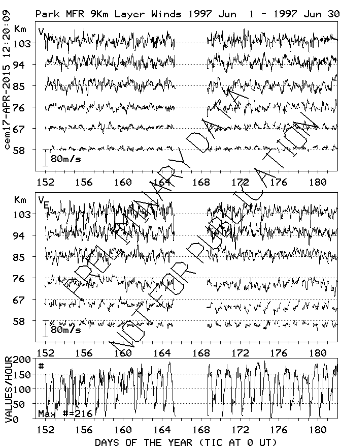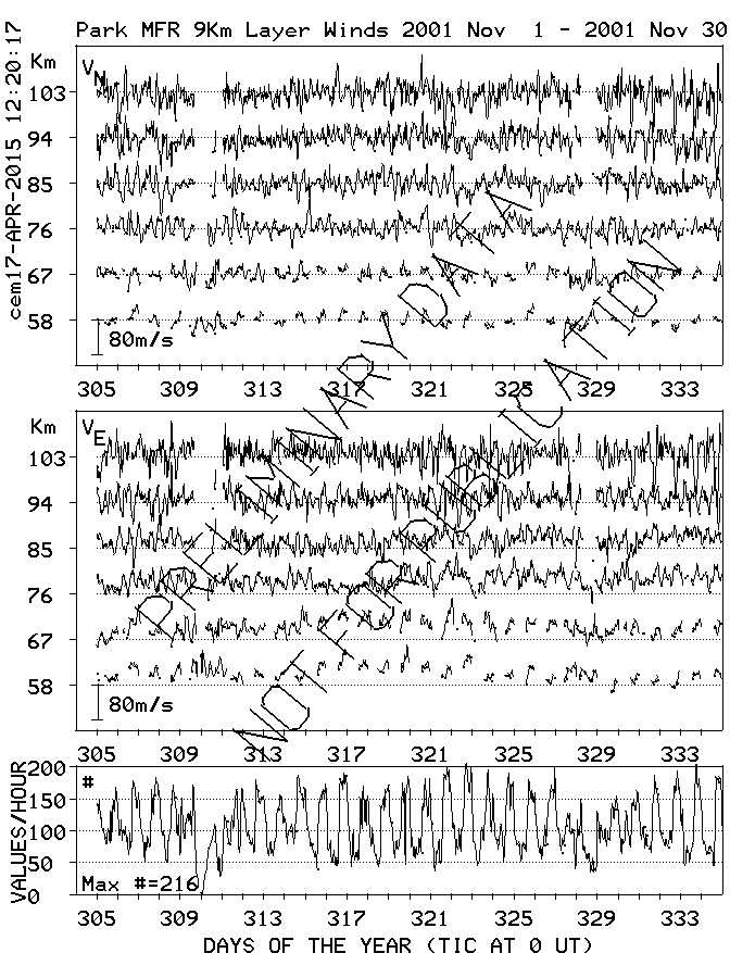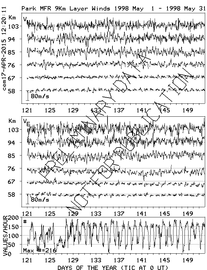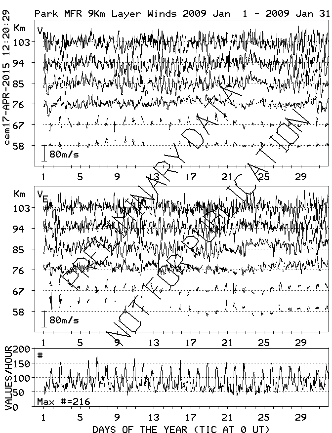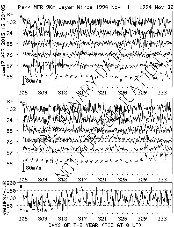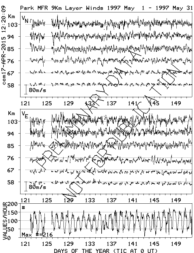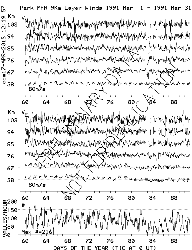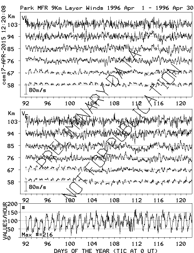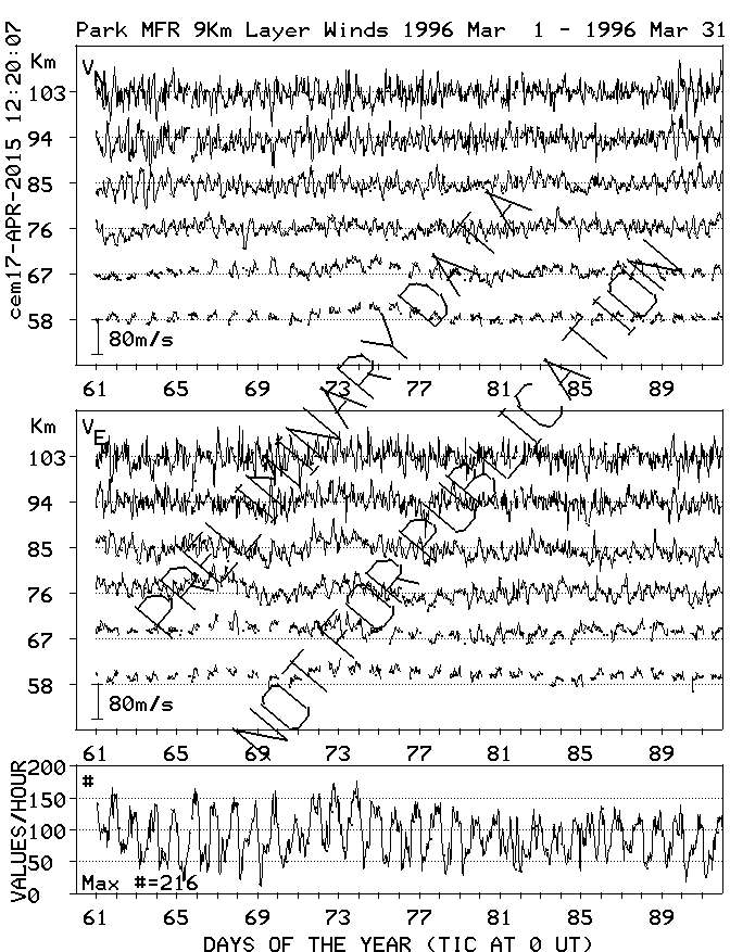 Saskatoon (52N,107W) MF Radar Winds, monthly quick look plots