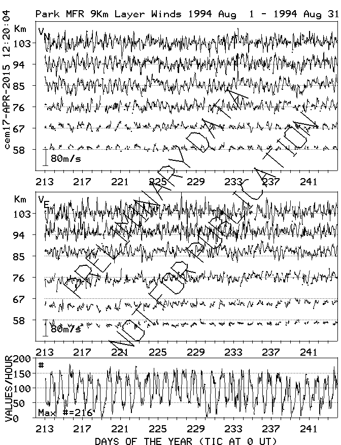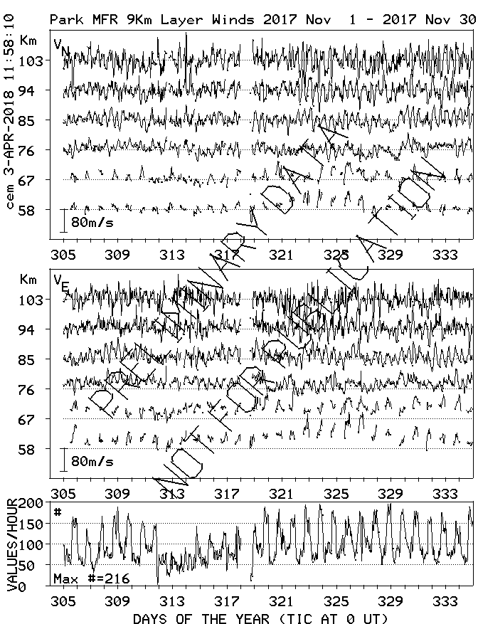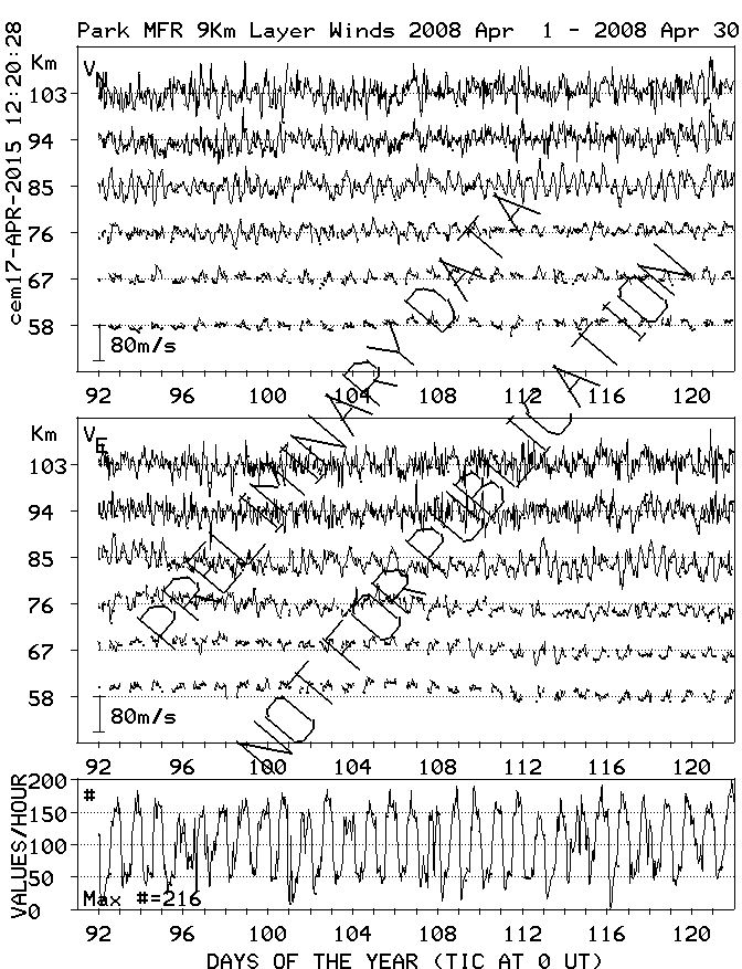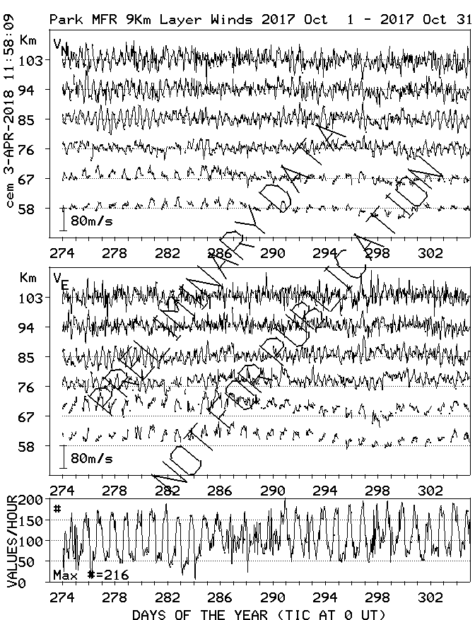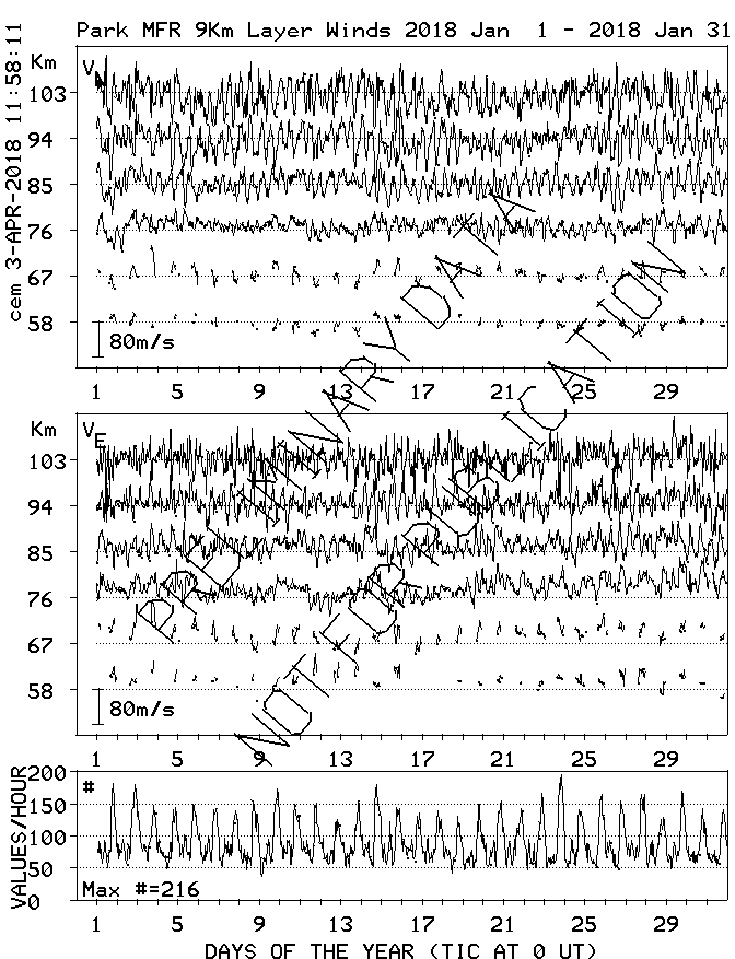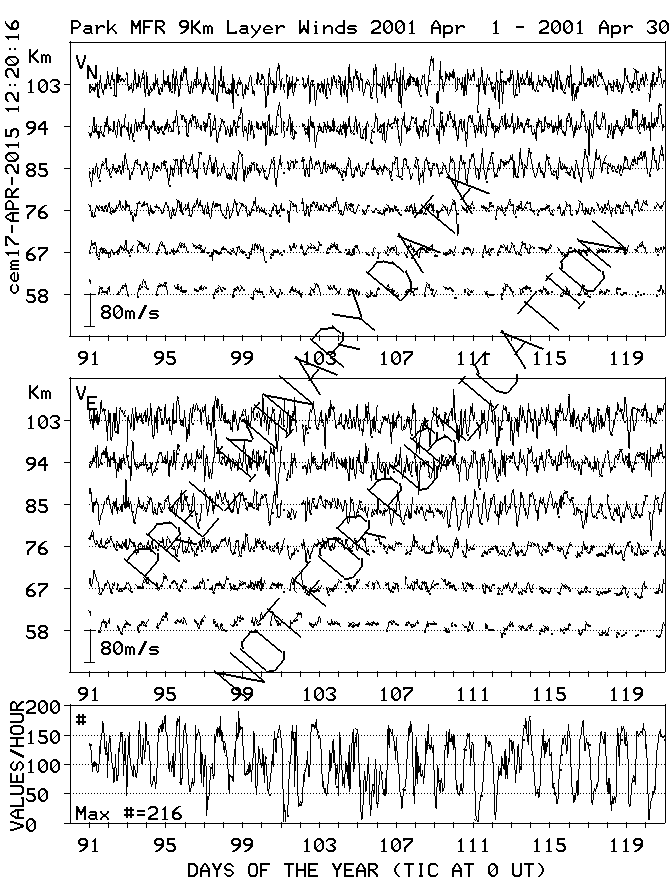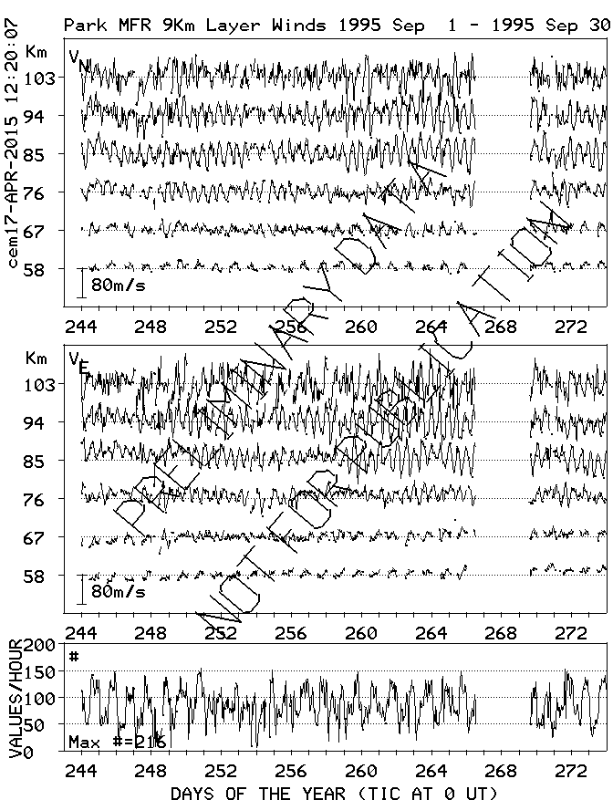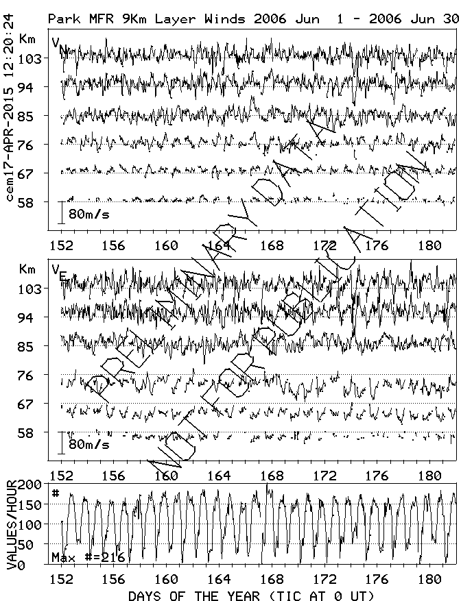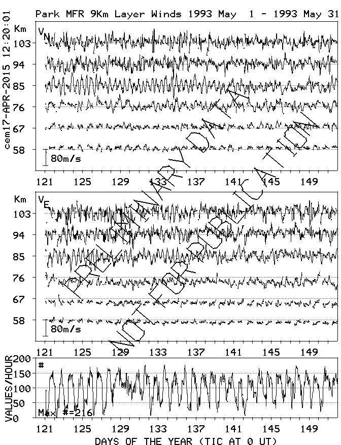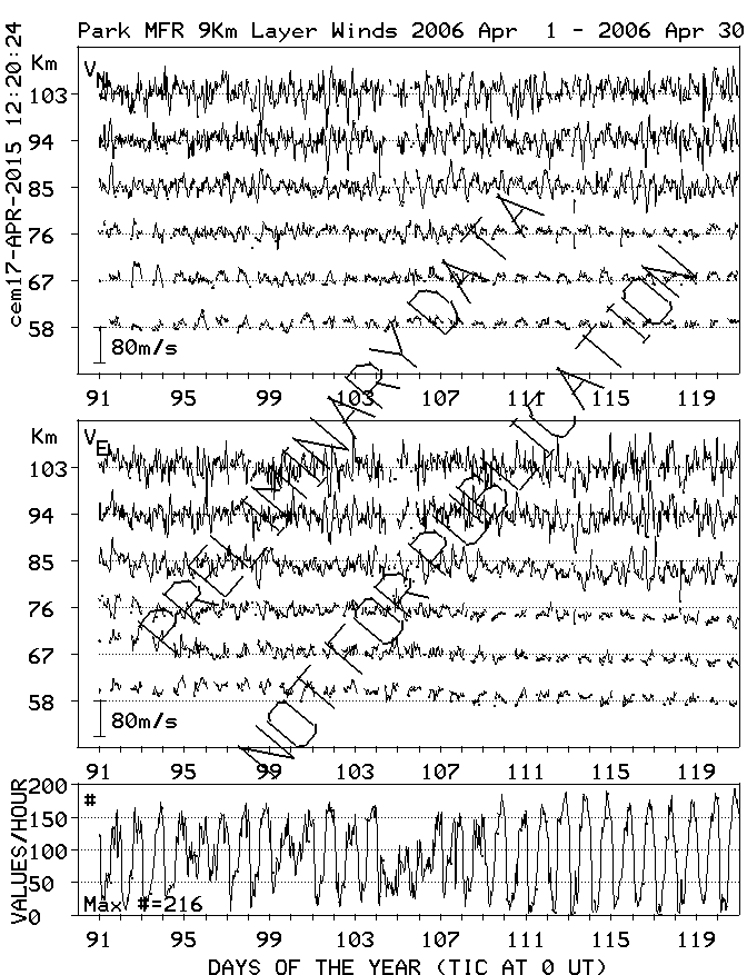 Saskatoon (52N,107W) MF Radar Winds, monthly quick look plots