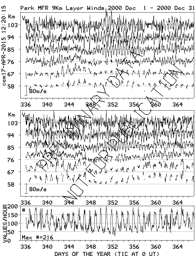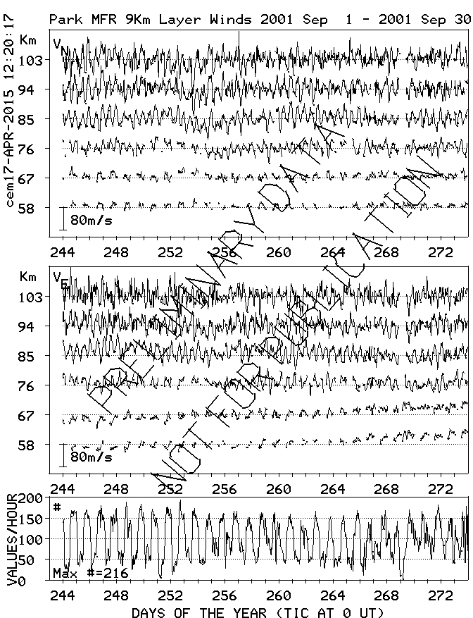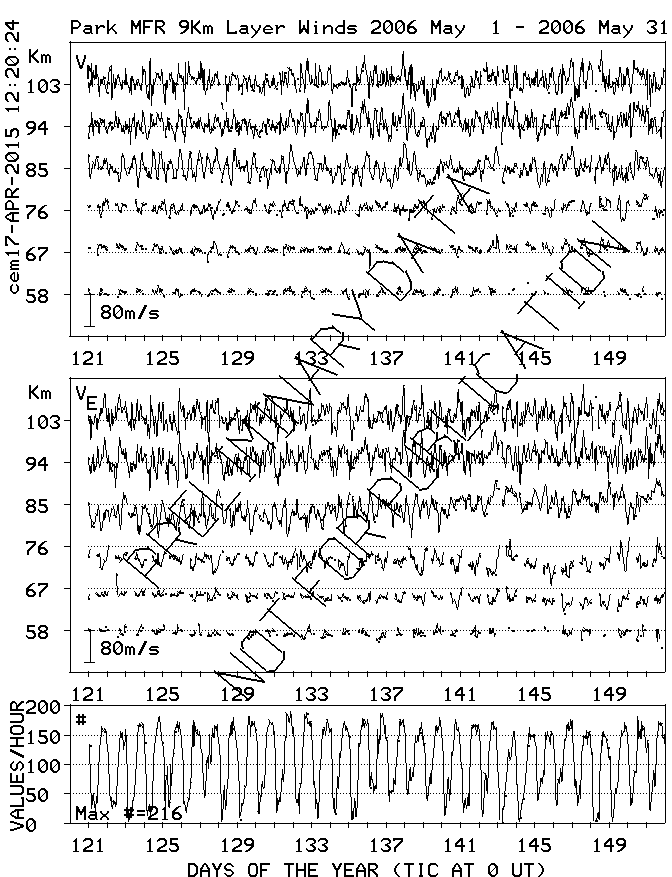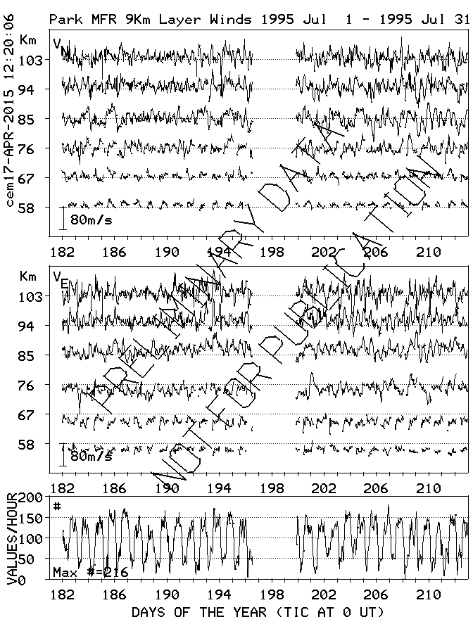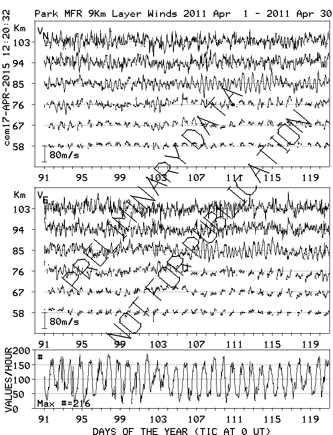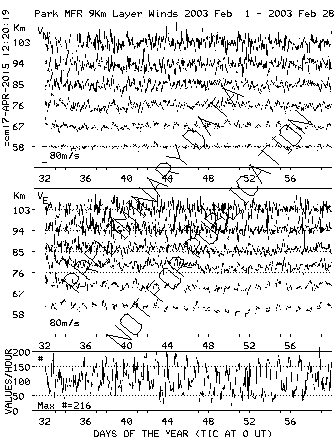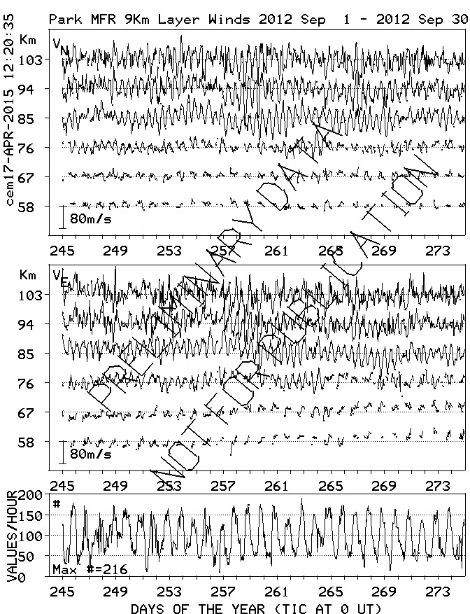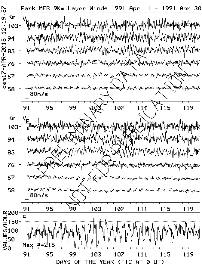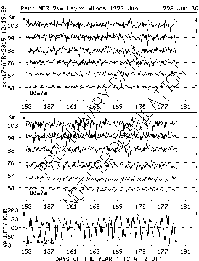 Saskatoon (52N,107W) MF Radar Winds, monthly quick look plots