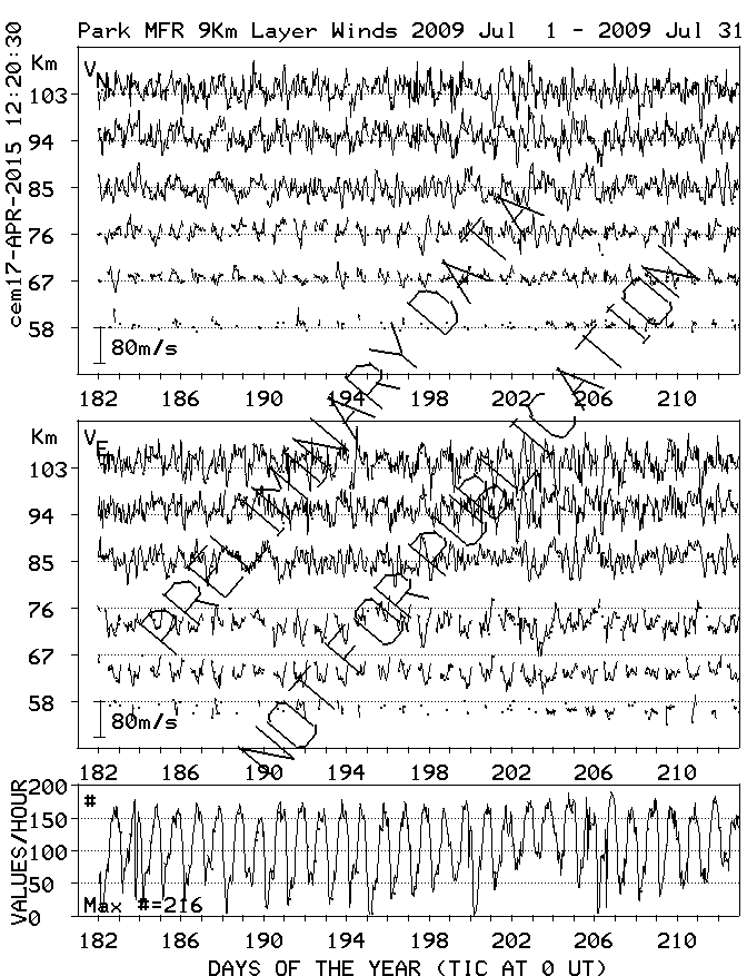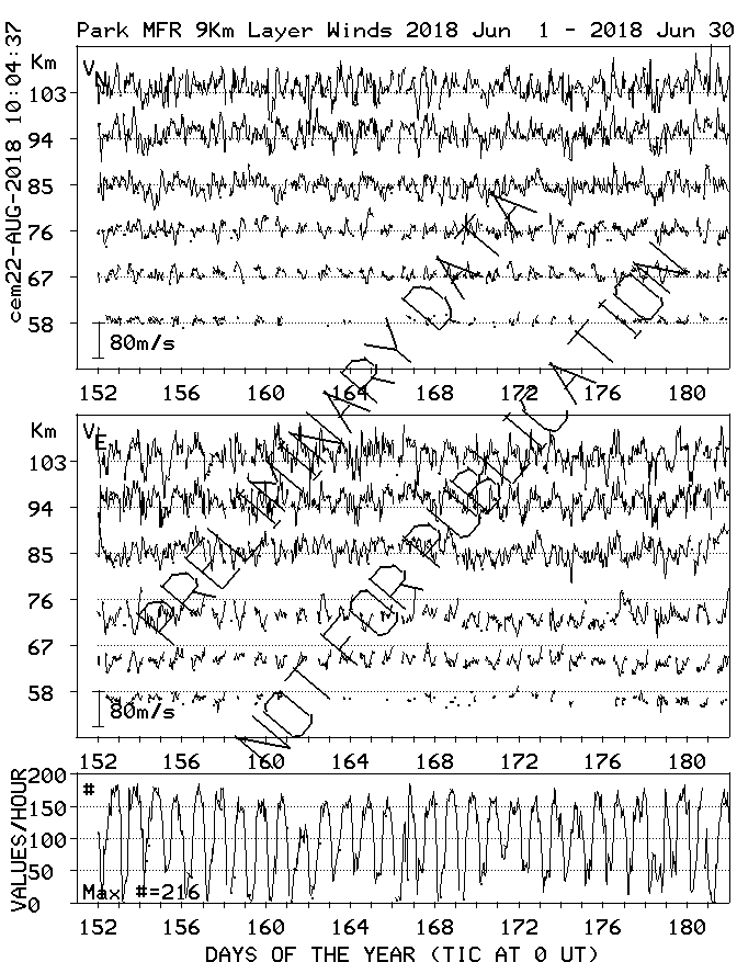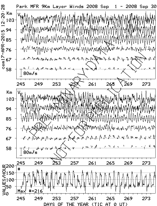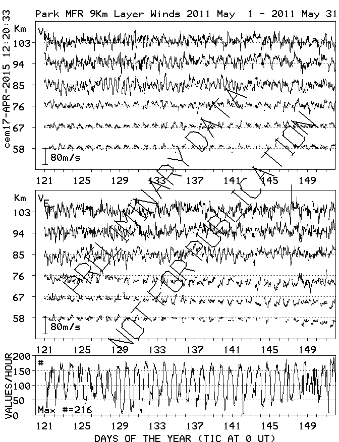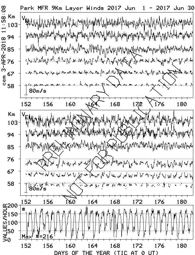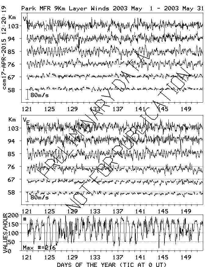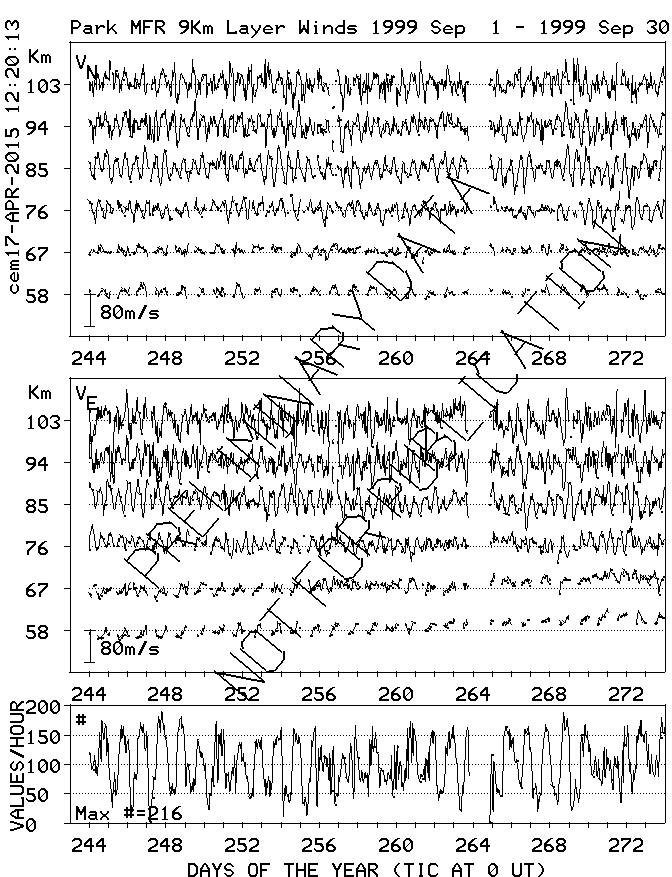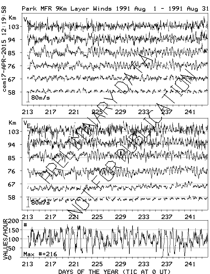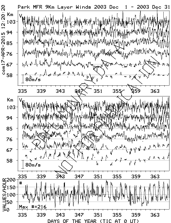 Saskatoon (52N,107W) MF Radar Winds, monthly quick look plots