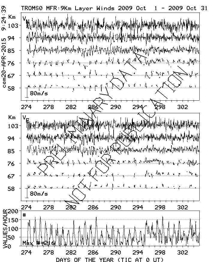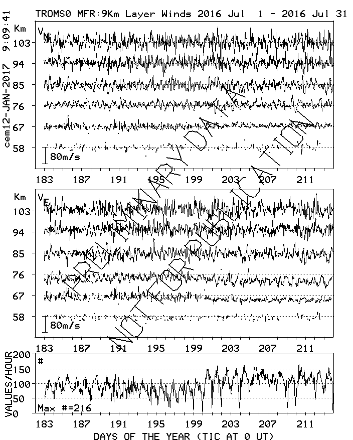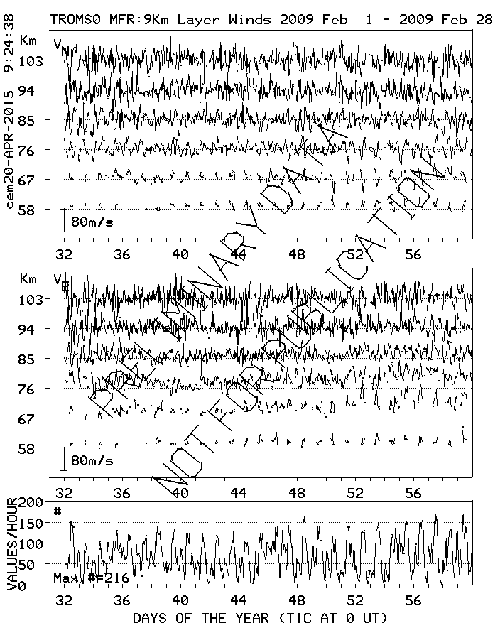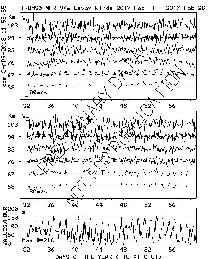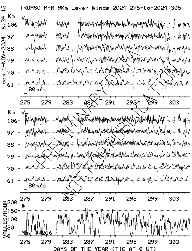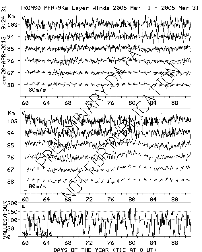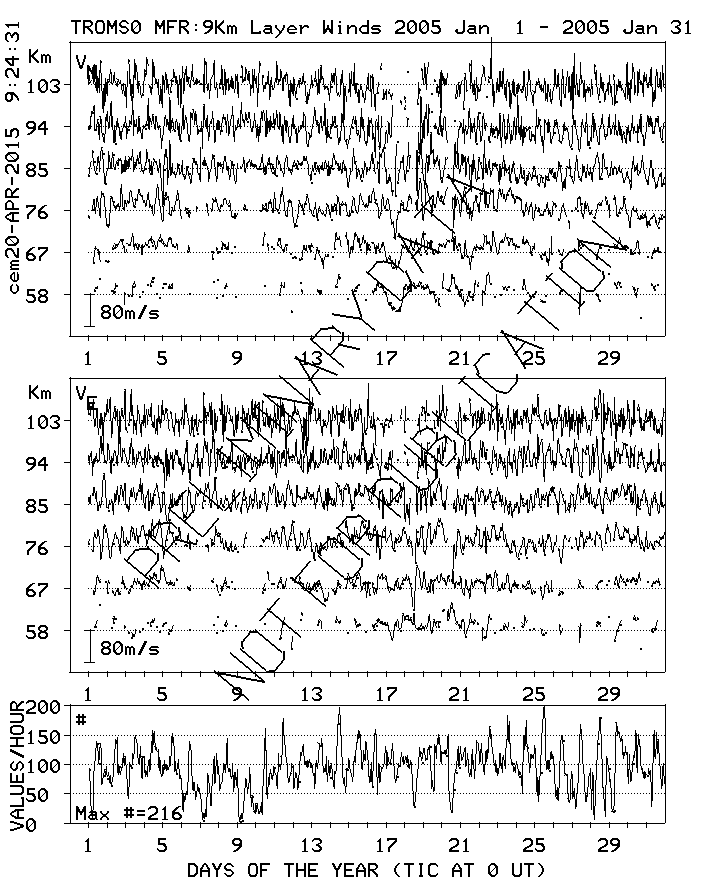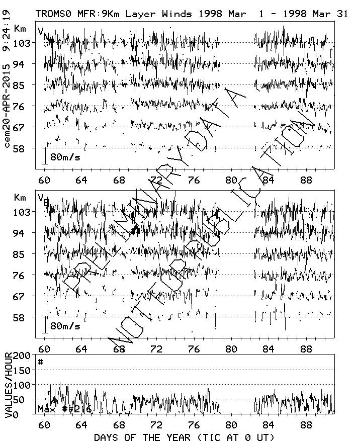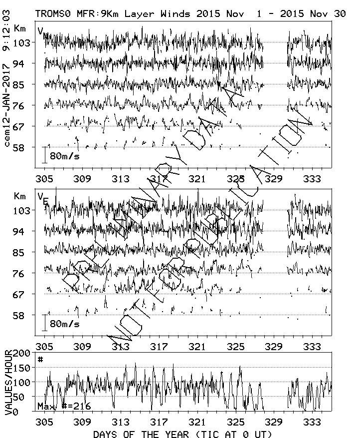 Tromsø (70N,19E) MF Radar Winds, monthly quick look plots