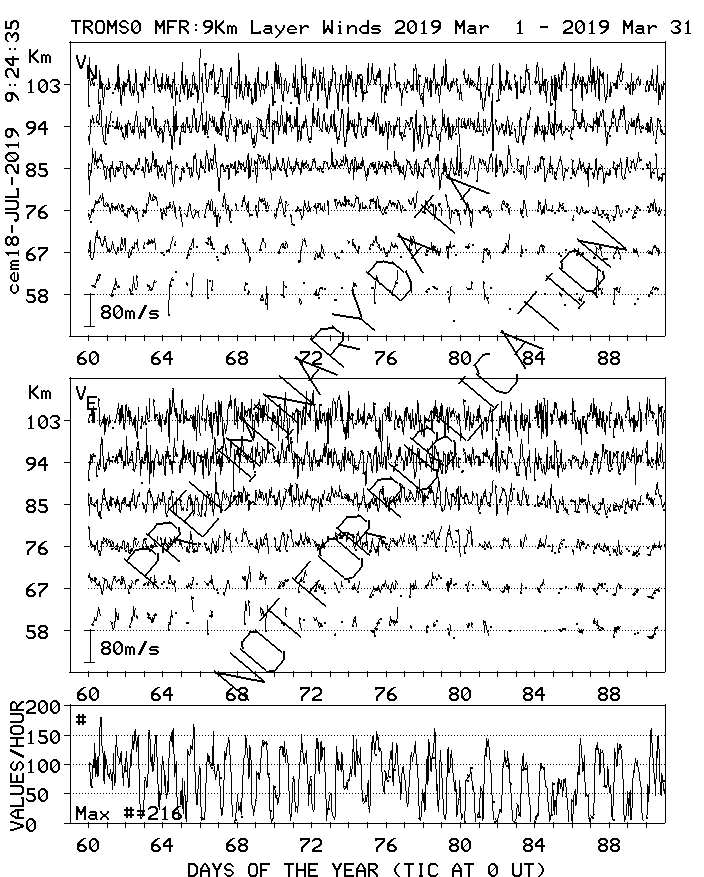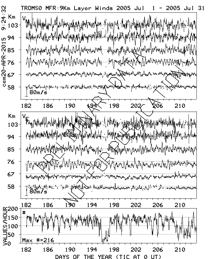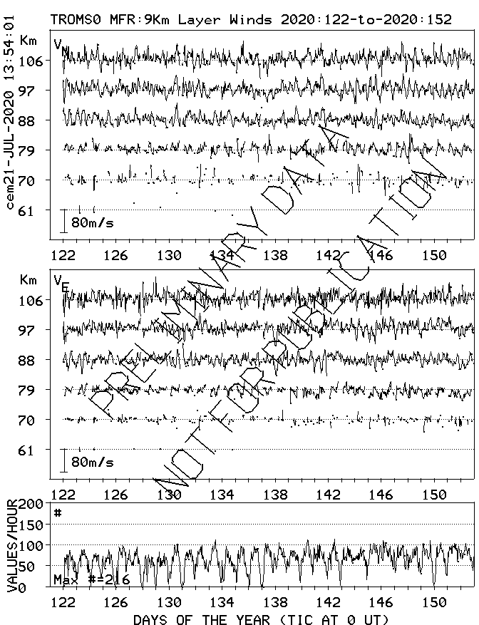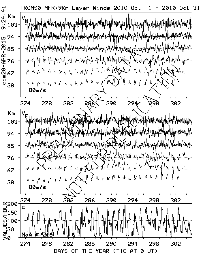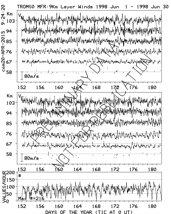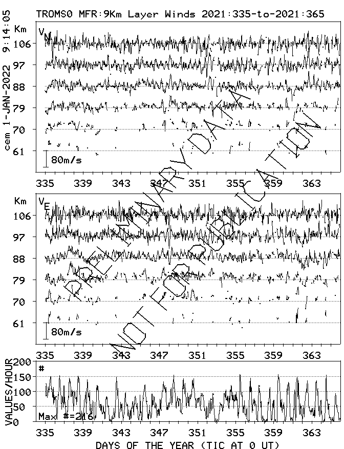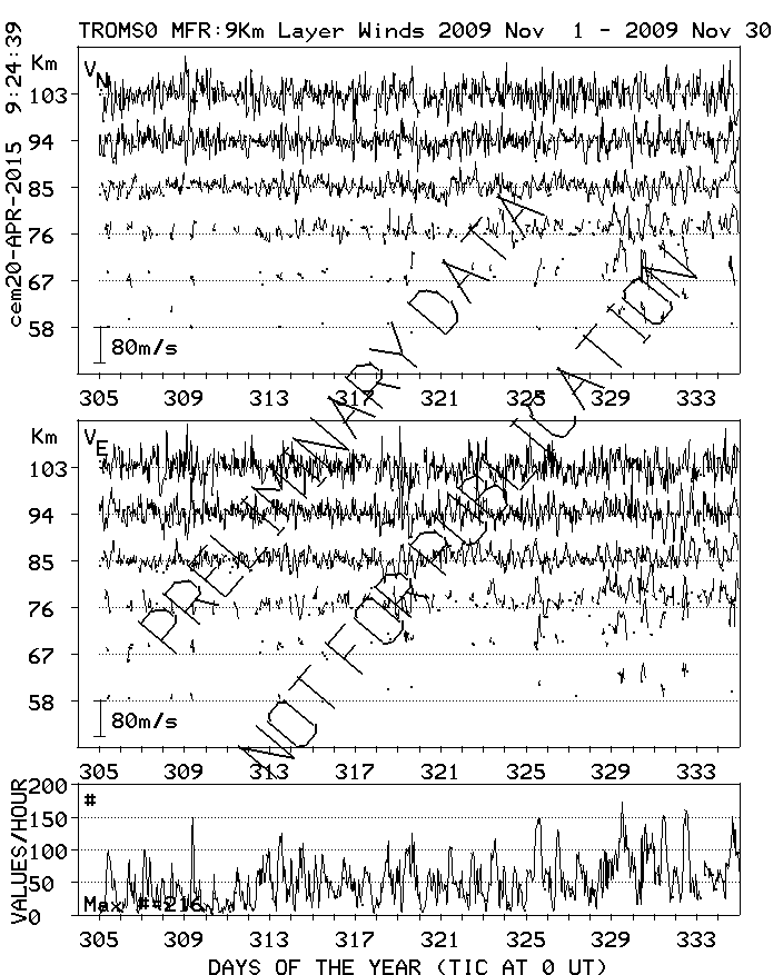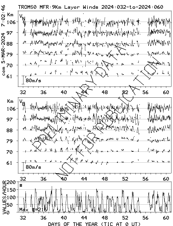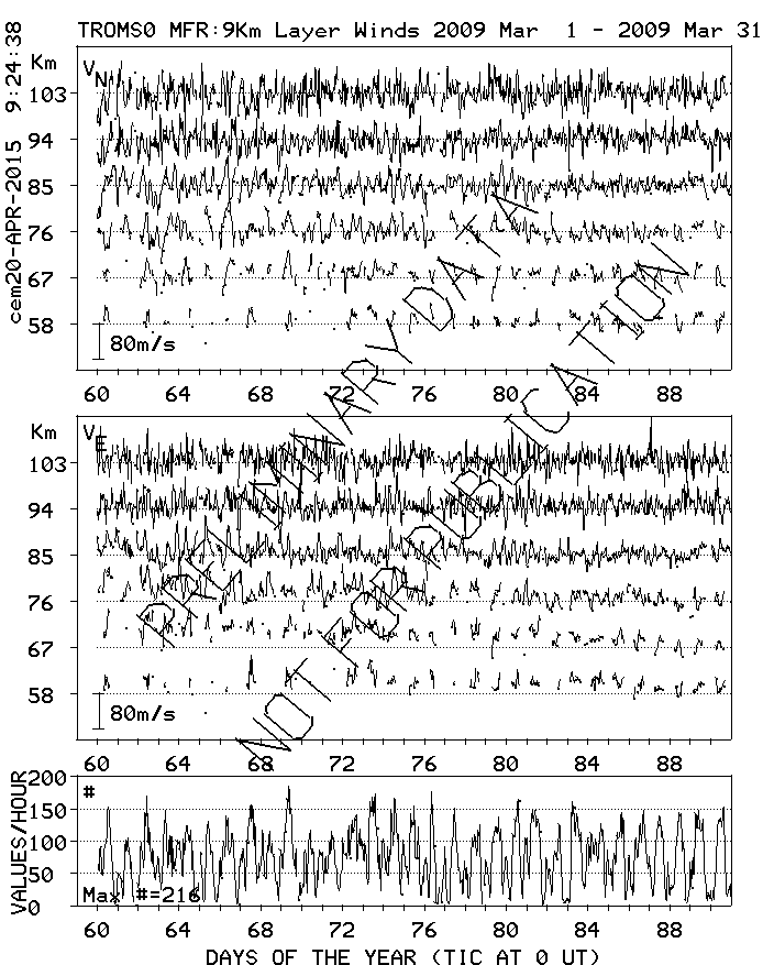 Tromsø (70N,19E) MF Radar Winds, monthly quick look plots