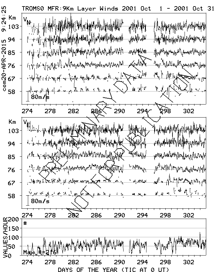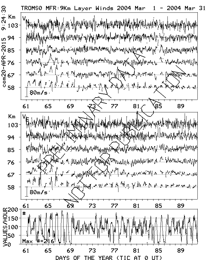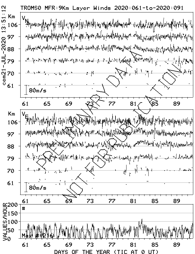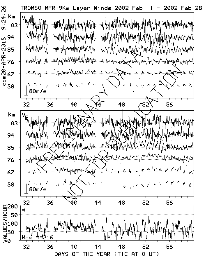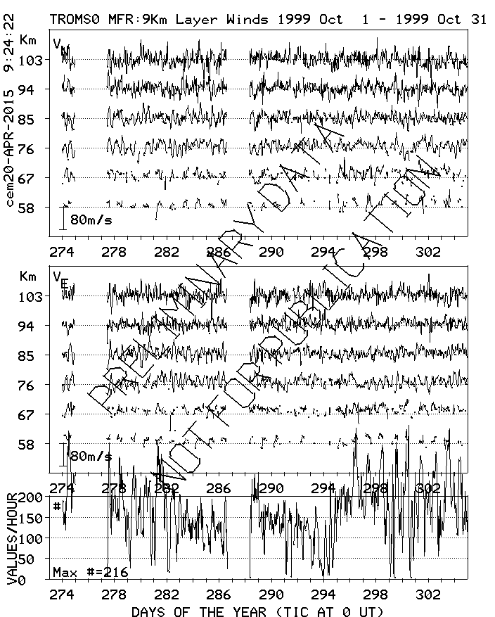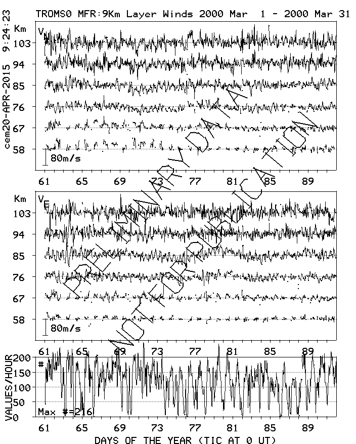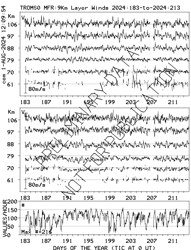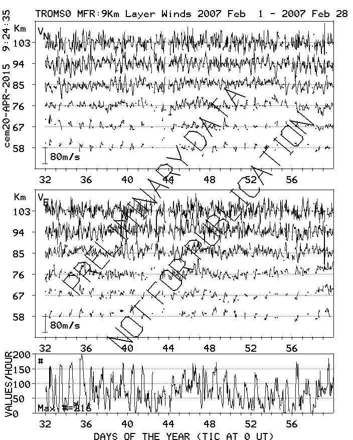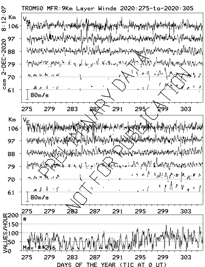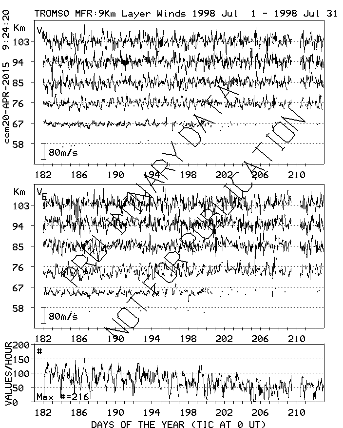 Tromsø (70N,19E) MF Radar Winds, monthly quick look plots