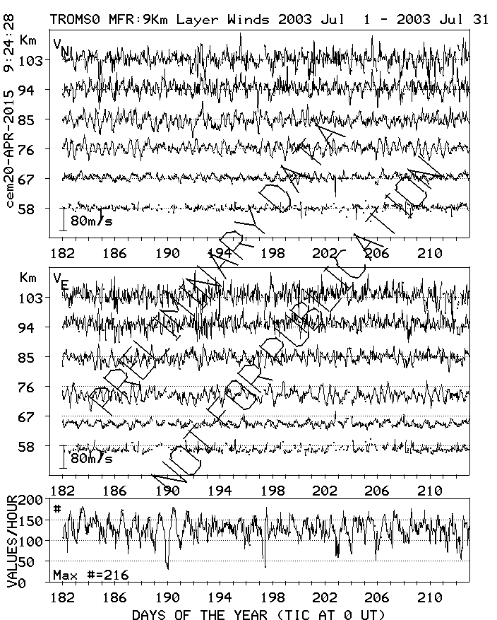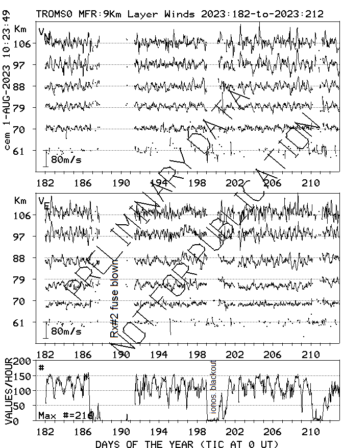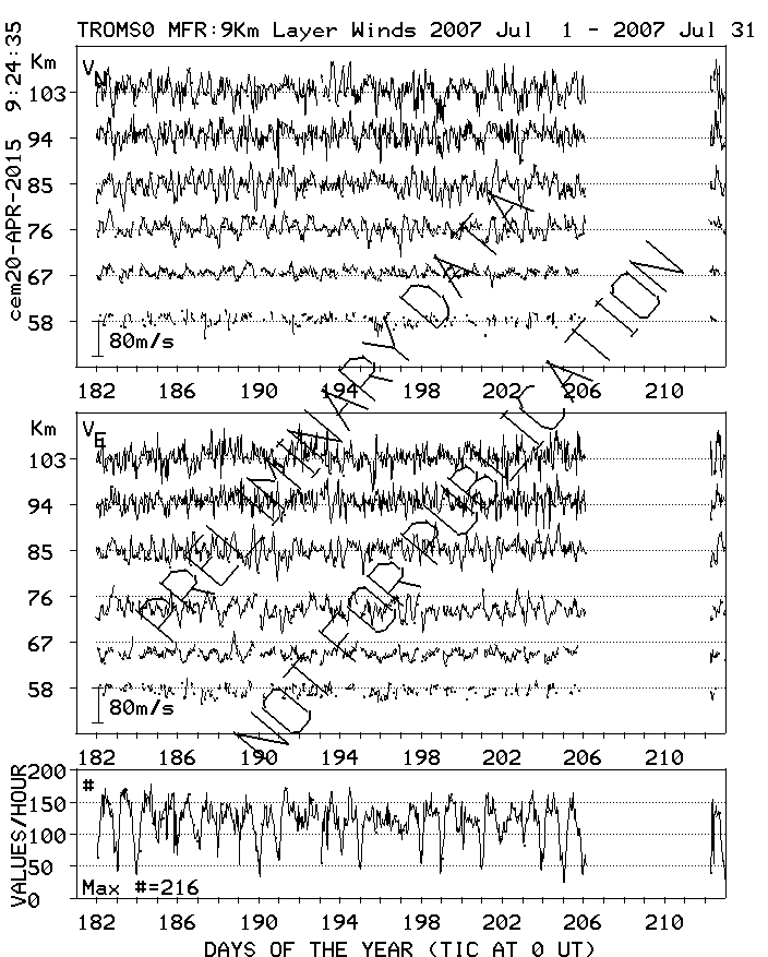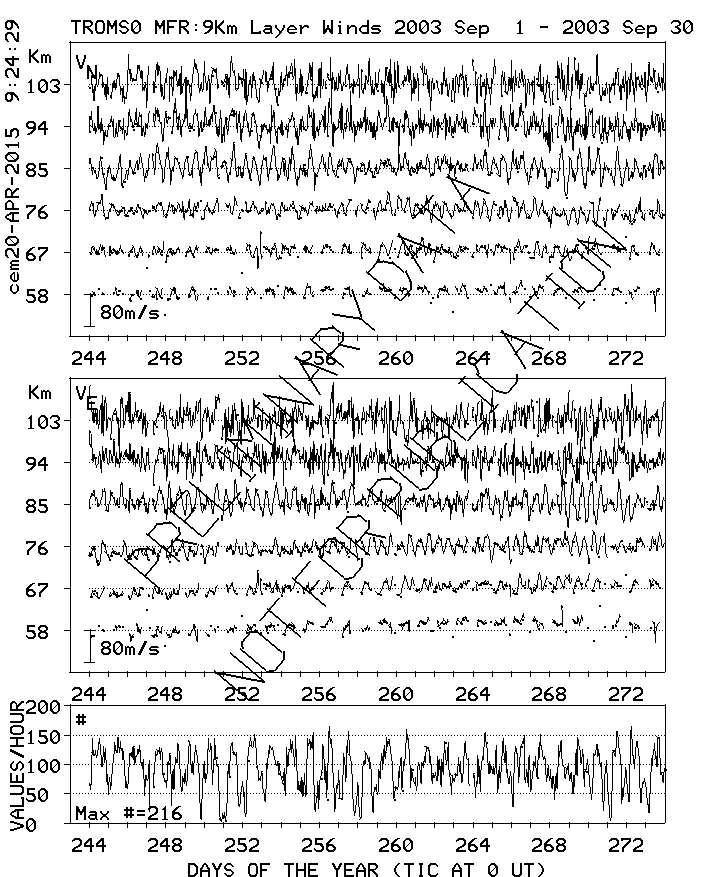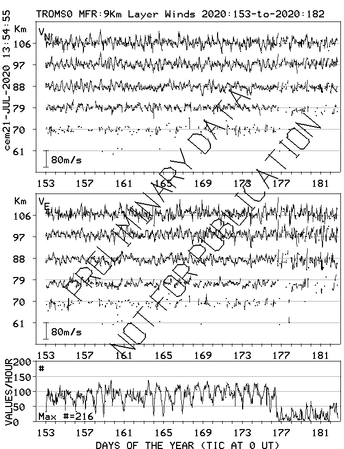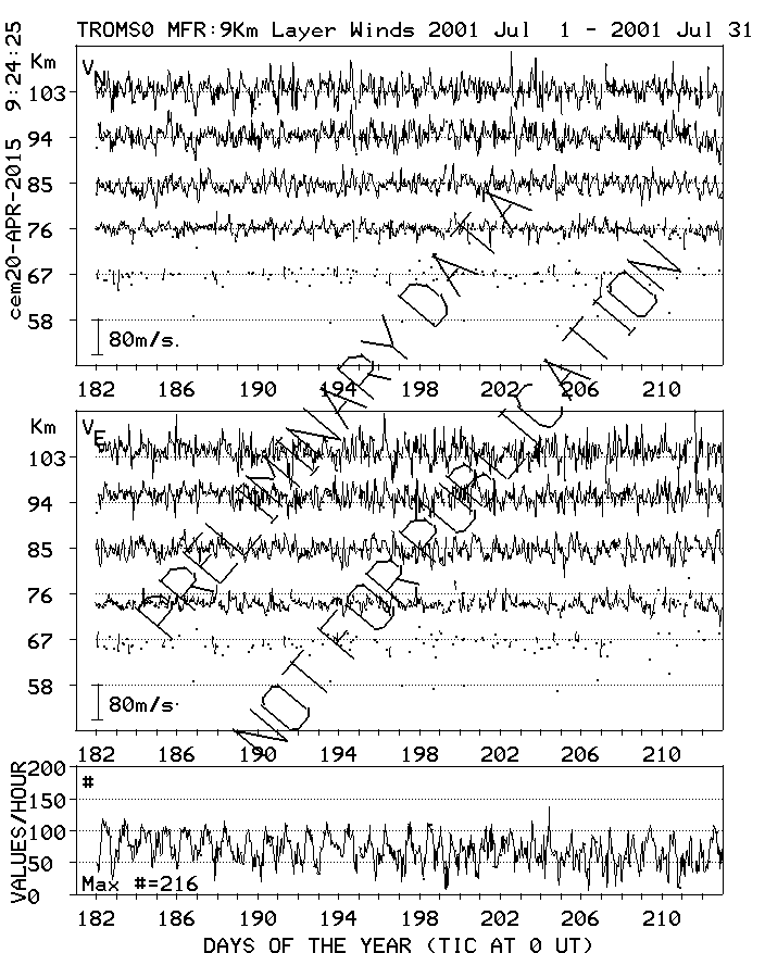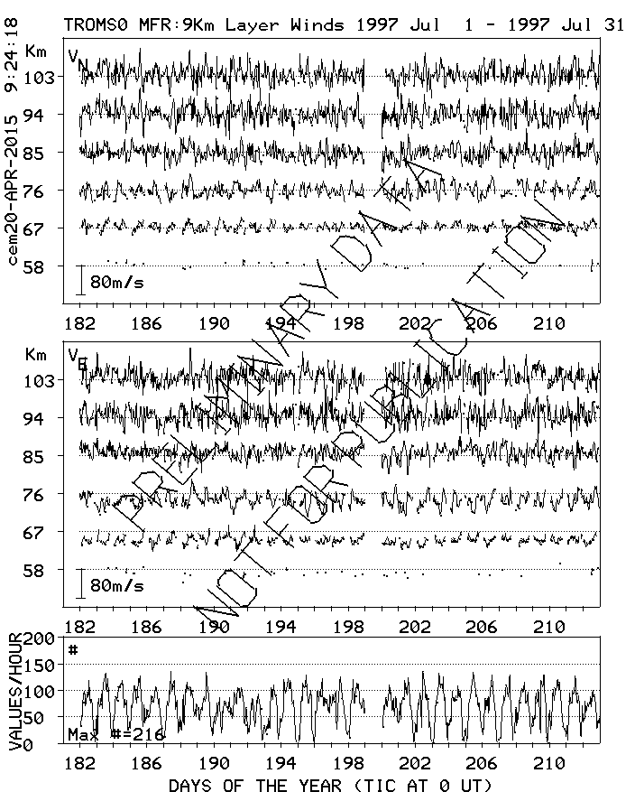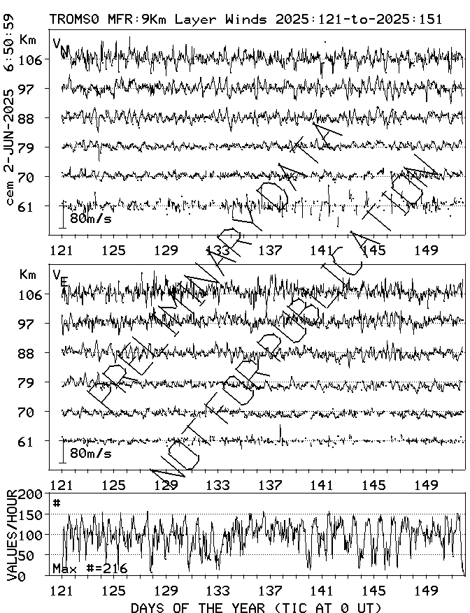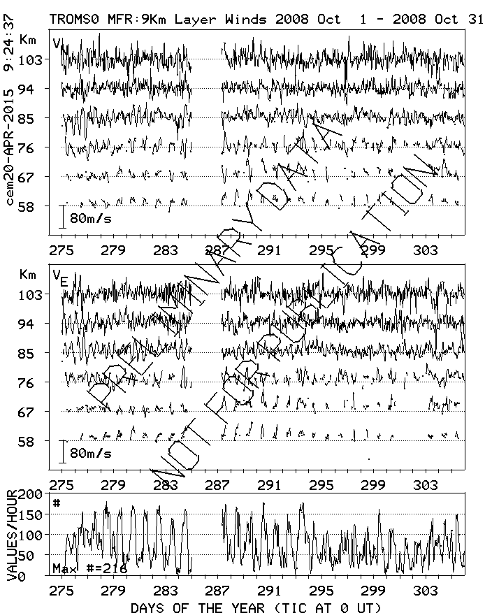 Tromsø (70N,19E) MF Radar Winds, monthly quick look plots
