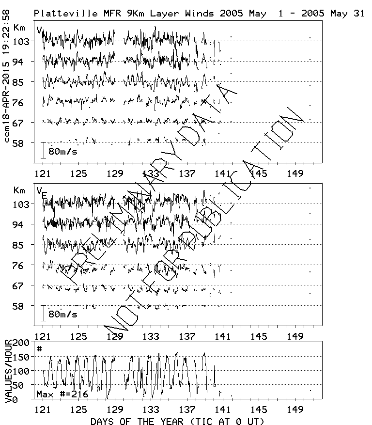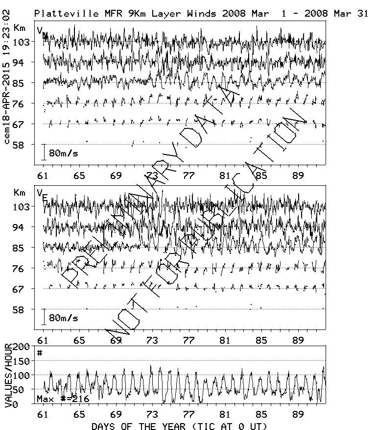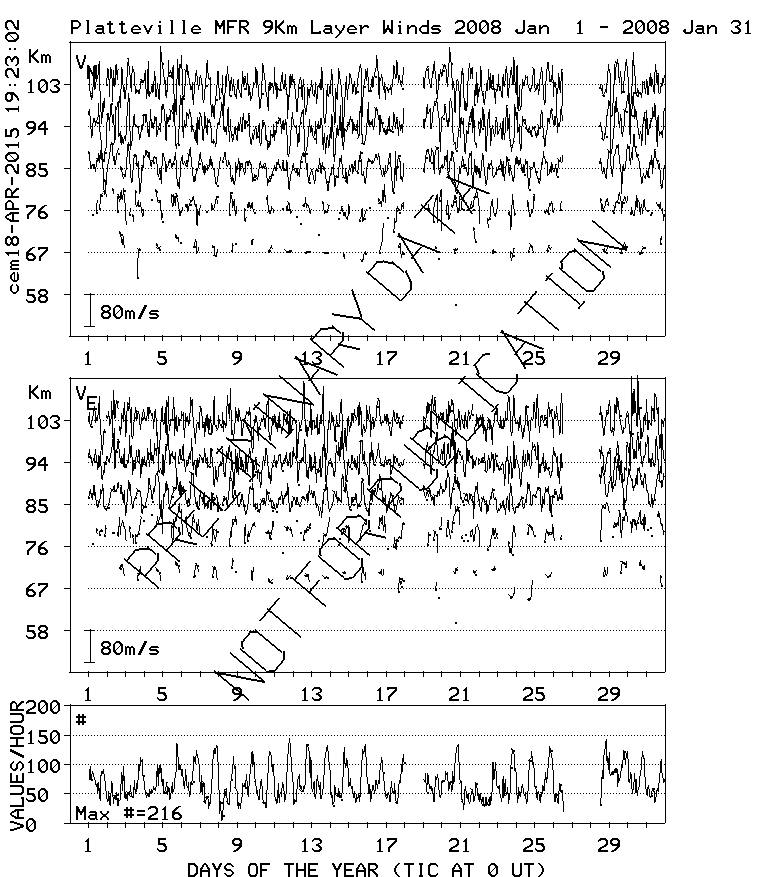 Platteville MF Radar Winds, monthly quick look plots